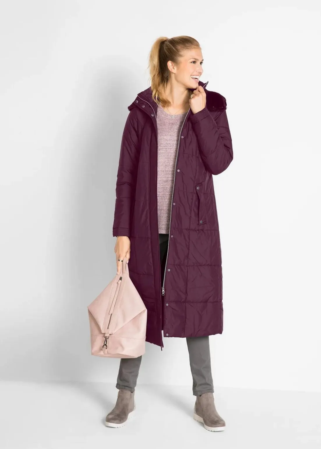 Ansprechender Langmantel mit Steppung und abnehmbarer Kapuze