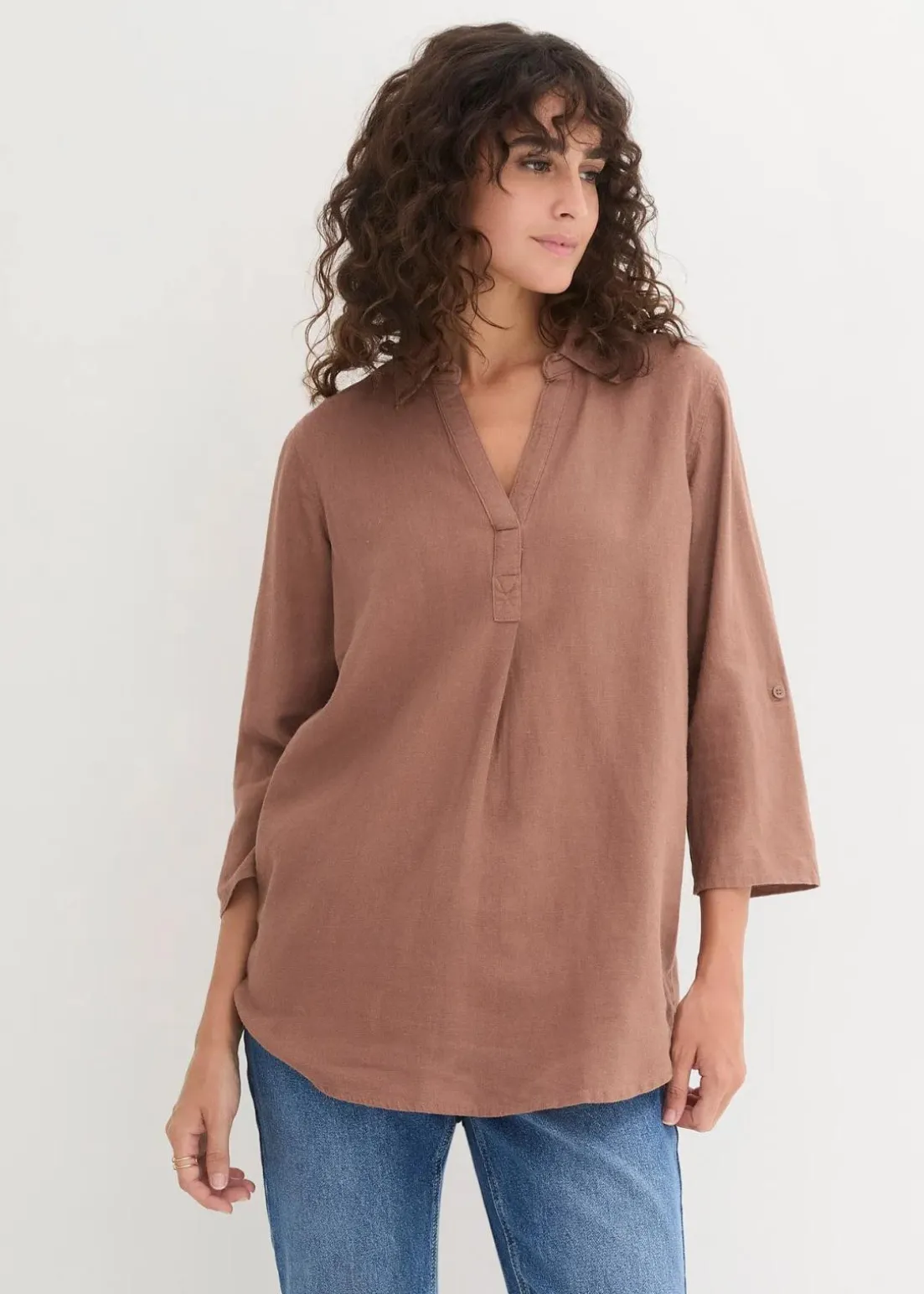 Locker sitzende Leinenbluse mit verstellbaren Ärmeln