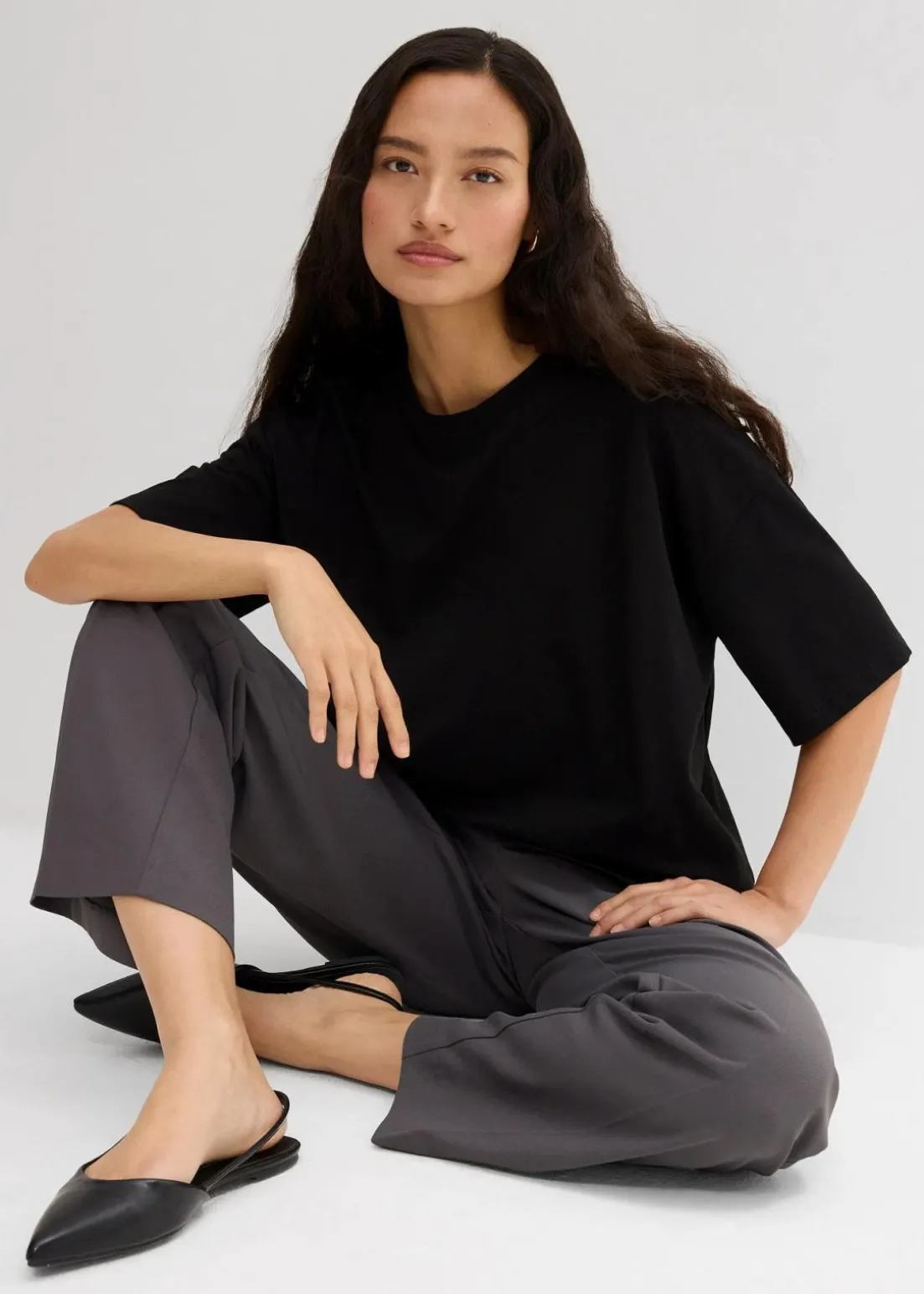 T-Shirt mit lockerer Passform mit einem gerippten Rundhalsausschnitt sowie verlängerten kurzen Ärmel