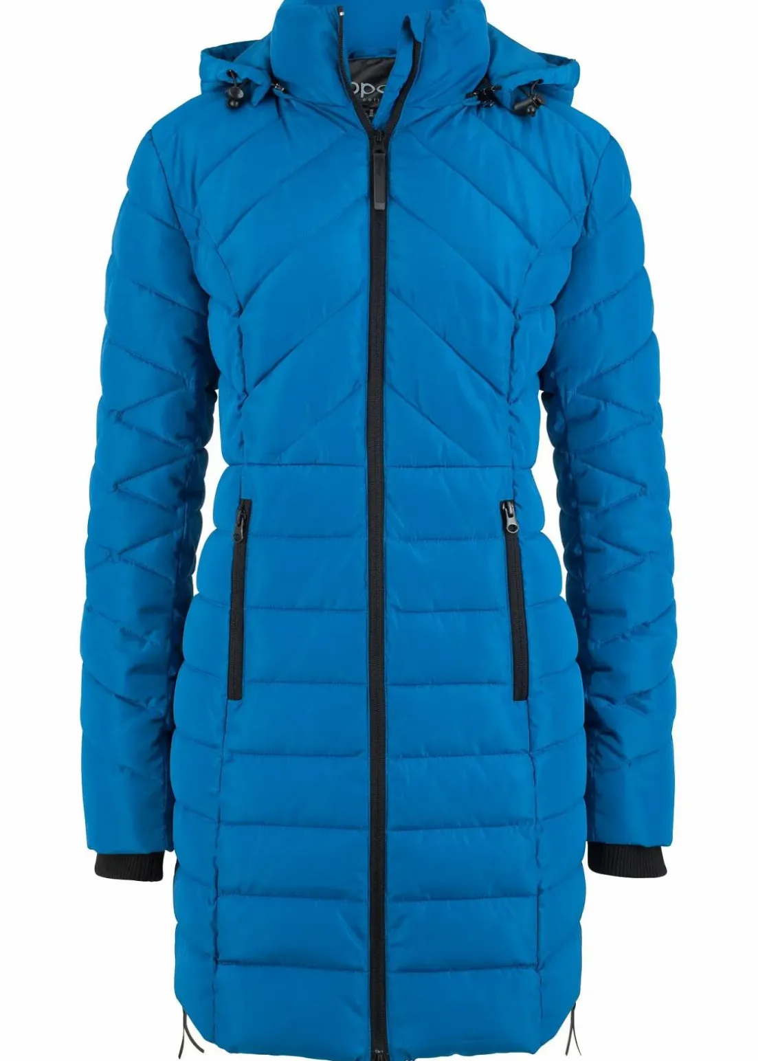 Diese Steppjacke mit kurzem Kragen überzeugt mit beidem: hohem Tragekomfort und einem legeren Aussehen. Das Modell von bpc präsentiert sich in angenehmer Länge mit einer abnehmbaren Kapuze und einem Tunnelzug. Mithilfe der seitlichen Reißverschlüsse lässt sich die Jacke an der Hüfte erweitern. Farblich abgesetzte Ärmelenden mit Rippbündchen unterstreichen das lässige Aussehen. Zu schließen ist die bequeme Long-Steppjacke mit Wattierung mit einem 2-Wege-Reißverschluss.