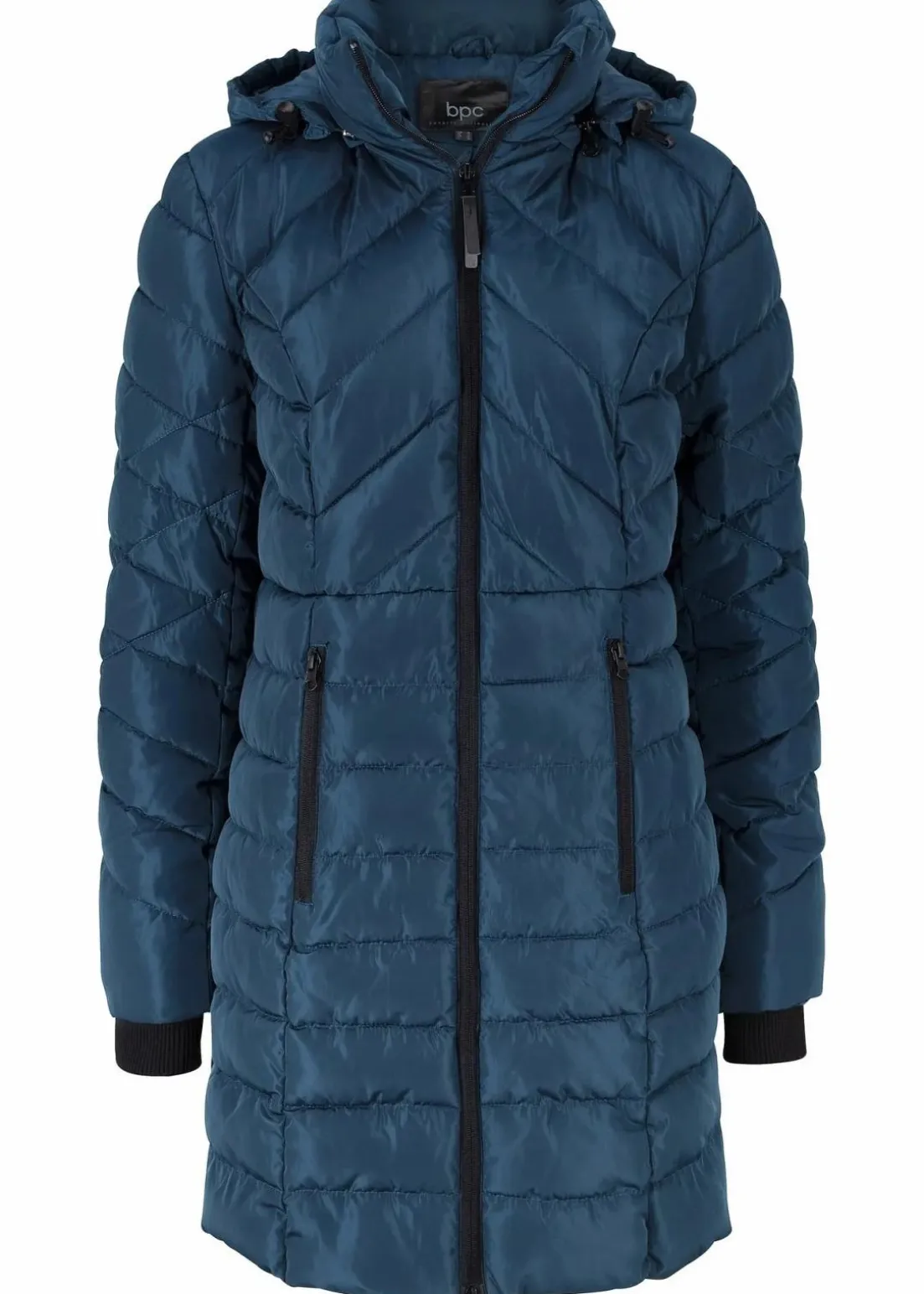 Diese Steppjacke mit kurzem Kragen überzeugt mit beidem: hohem Tragekomfort und einem legeren Aussehen. Das Modell von bpc präsentiert sich in angenehmer Länge mit einer abnehmbaren Kapuze und einem Tunnelzug. Mithilfe der seitlichen Reißverschlüsse lässt sich die Jacke an der Hüfte erweitern. Farblich abgesetzte Ärmelenden mit Rippbündchen unterstreichen das lässige Aussehen. Zu schließen ist die bequeme Long-Steppjacke mit Wattierung mit einem 2-Wege-Reißverschluss.