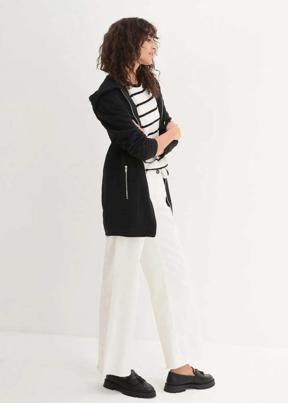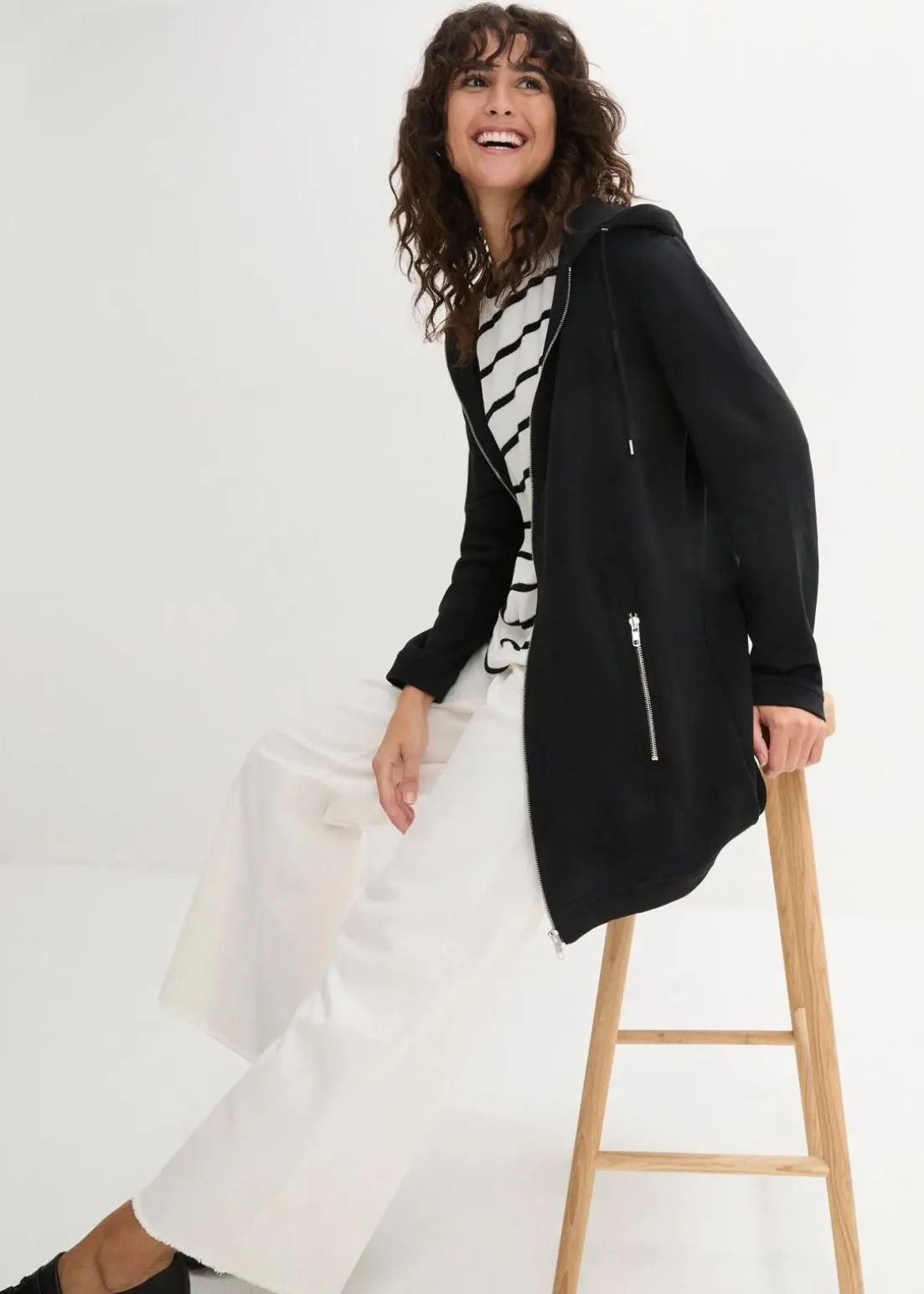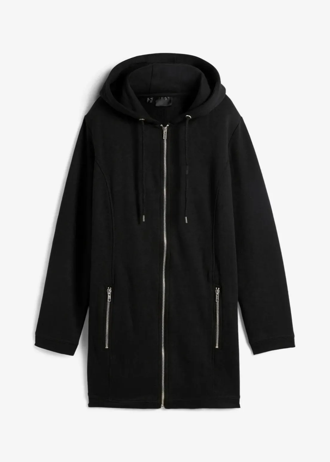 Bequeme Long-Sweatjacke mit Kapuze und Eingrifftaschen
