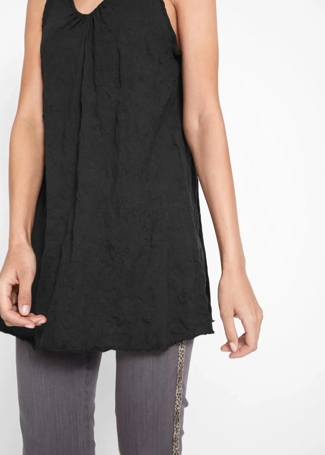 Long-Top mit Crash-Effekt und streckendem V-Ausschnitt