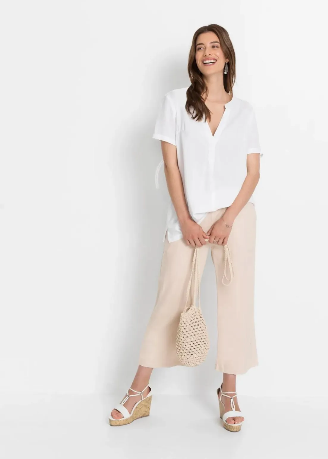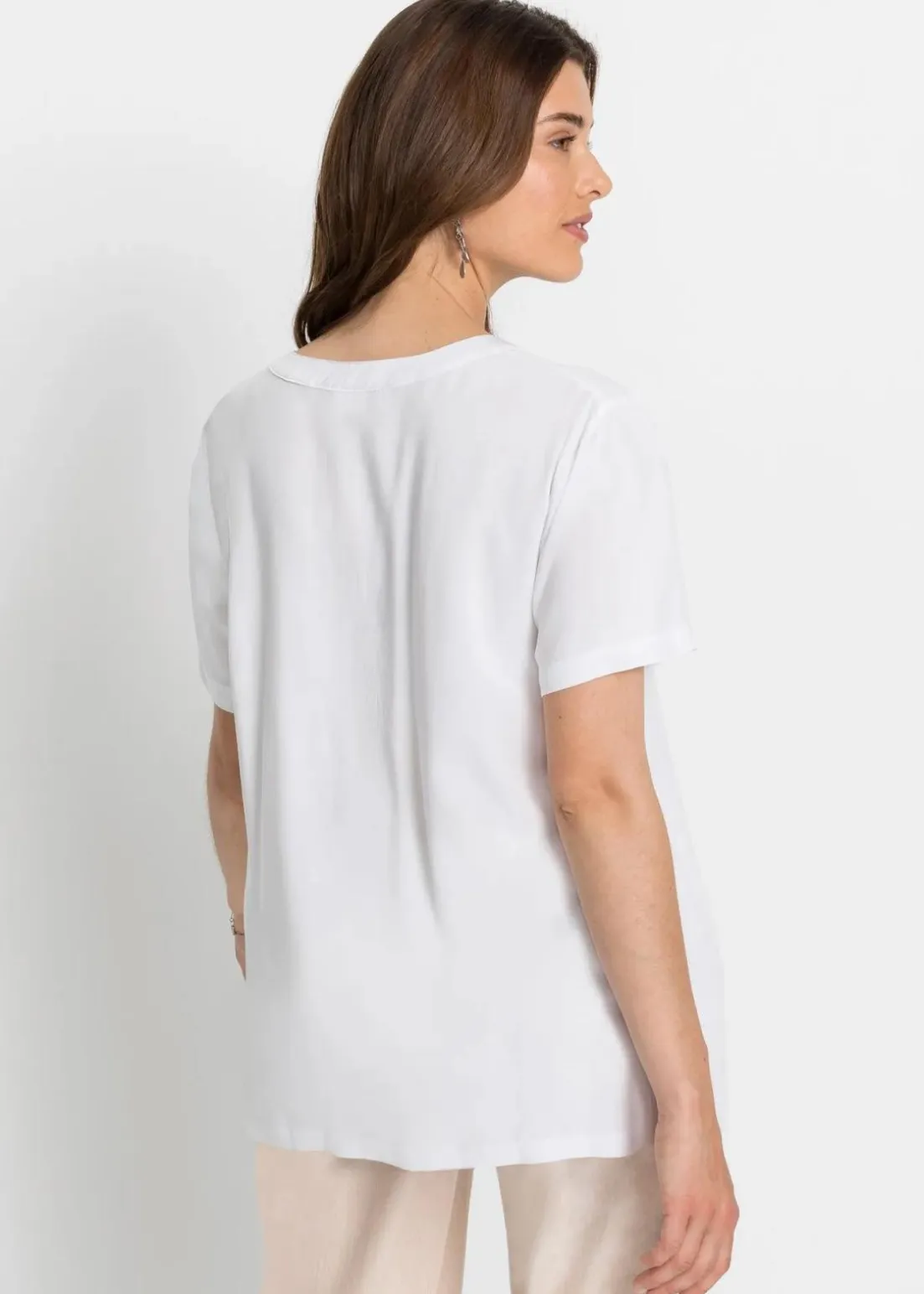 Moderne lang geschnittene Tunika mit Henleykragen