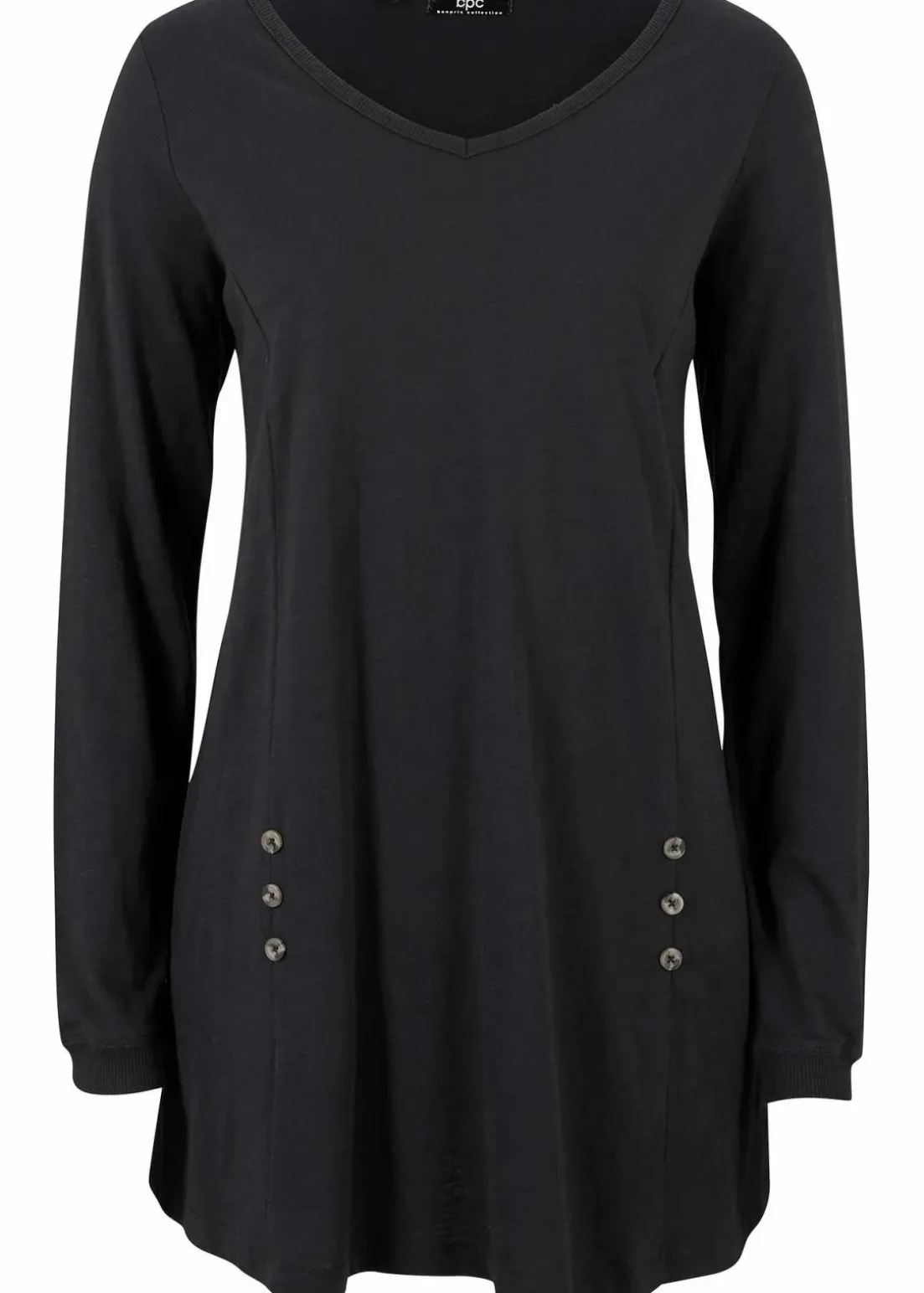 Figurschmeichelndes Longshirt in A-Linie mit dekorativen Knöpfen