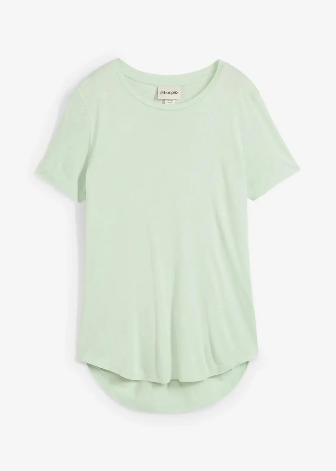 Modisches Longshirt, gerundeter Saum und Rundhalsausschnitt.