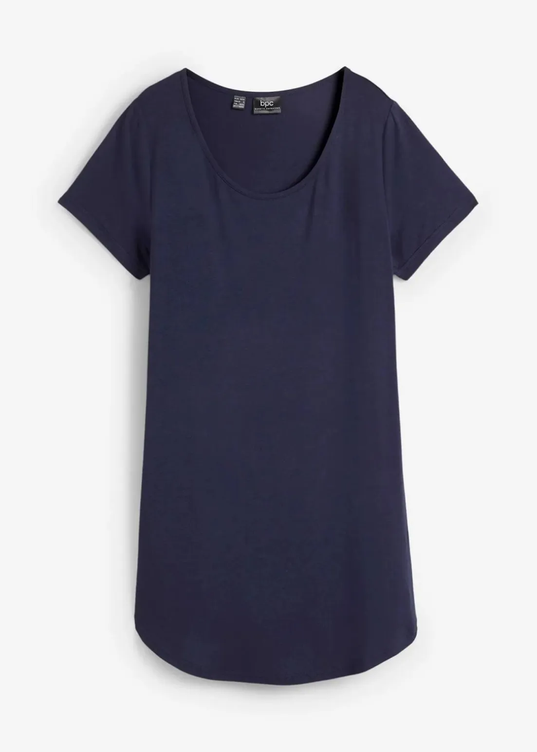 Super bequem und vielseitig kombinierbar ist dieses modische Longshirt mit kurzen Ärmeln und rundem Ausschnitt. Der praktische Allrounder in angenehmer Materialqualität punktet mit einem abgerundeten Saum, der hinten etwas länger ausfällt.Das tolle Shirt der Marke bpc ist figurbetont geschnitten und lässt sich gut zu Leggings, Strumpfhosen oder Skinny-Hosen kombinieren.