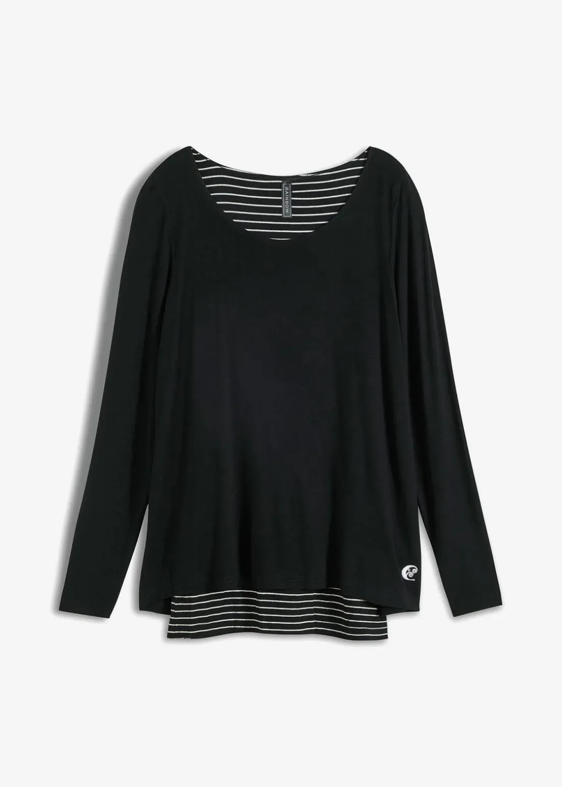 Mit seinem fließenden Stoff sorgt das doppellagige Langarmshirt für eine relaxte Optik. Durch den abgesetzten Saum unten im kontrastfarbigen Design entsteht ein trendiger Style. Das Shirt im 2-in-1-Look lässt sich äußerst vielseitig kombinieren und sieht zu Jeanswear ebenso stylish aus wie zu Leggings.Mit einer Jeans mit Used-Effekten ergibt sich ein angesagtes Outfit für den Tag.