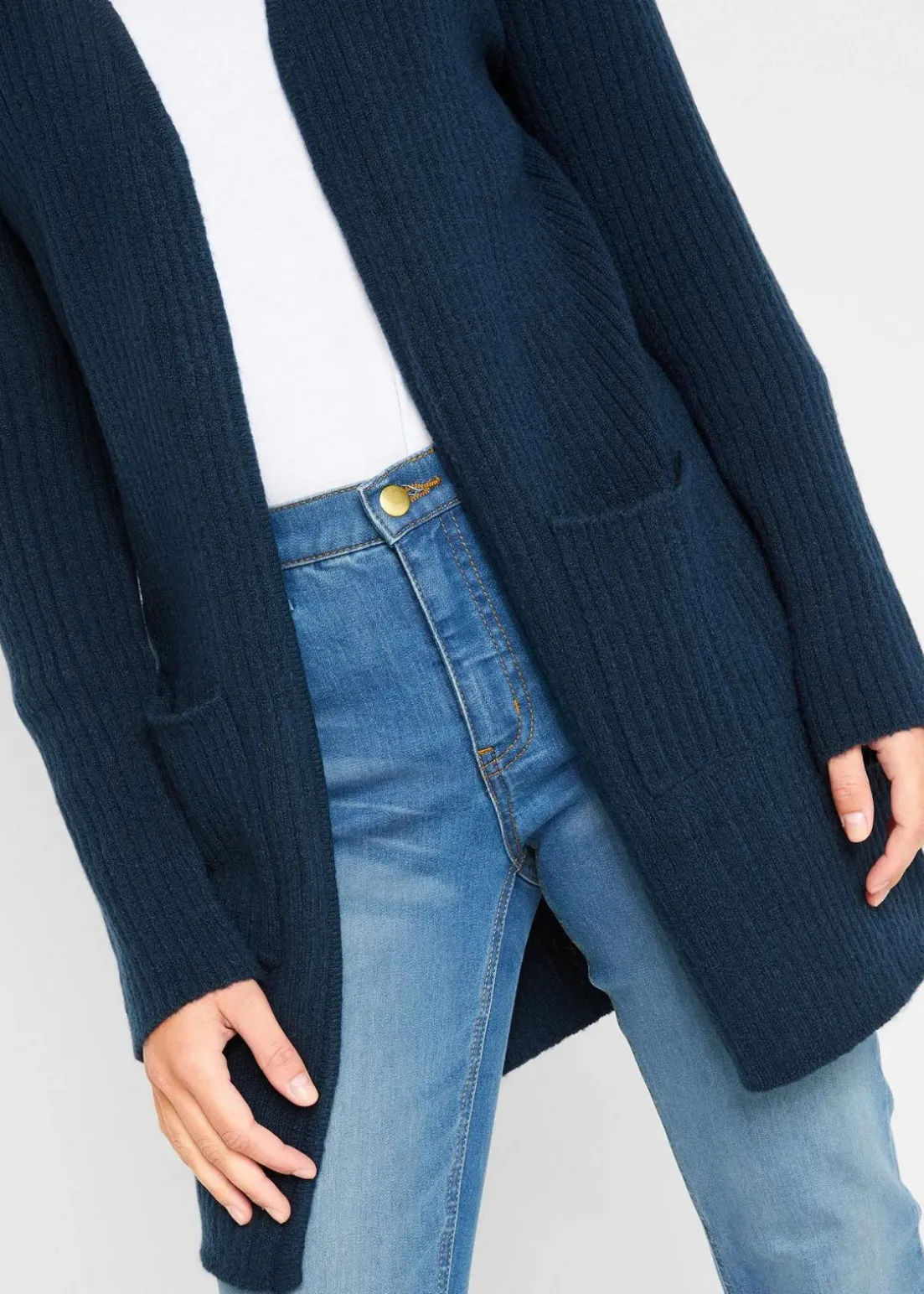 Kuscheliger Cardigan aus Rippstrick mit V-Ausschnitt und überschnittenen Schultern