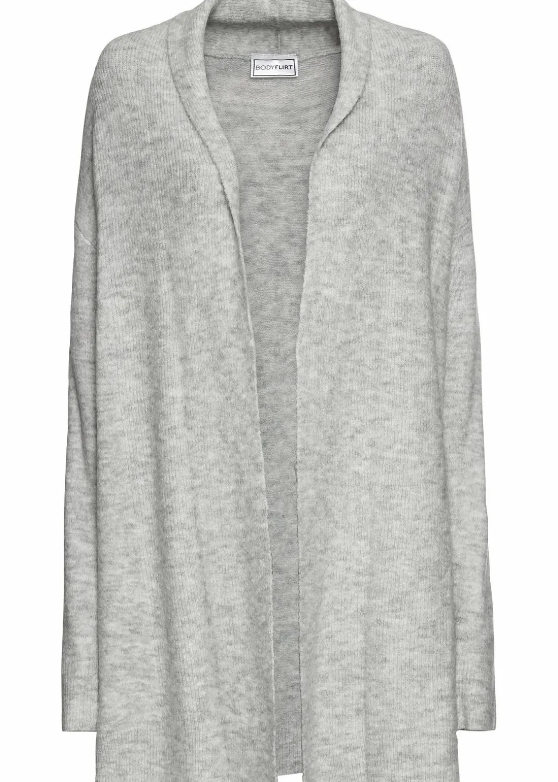 Fein gerippte Schalkragen-Strickjacke in langer Form