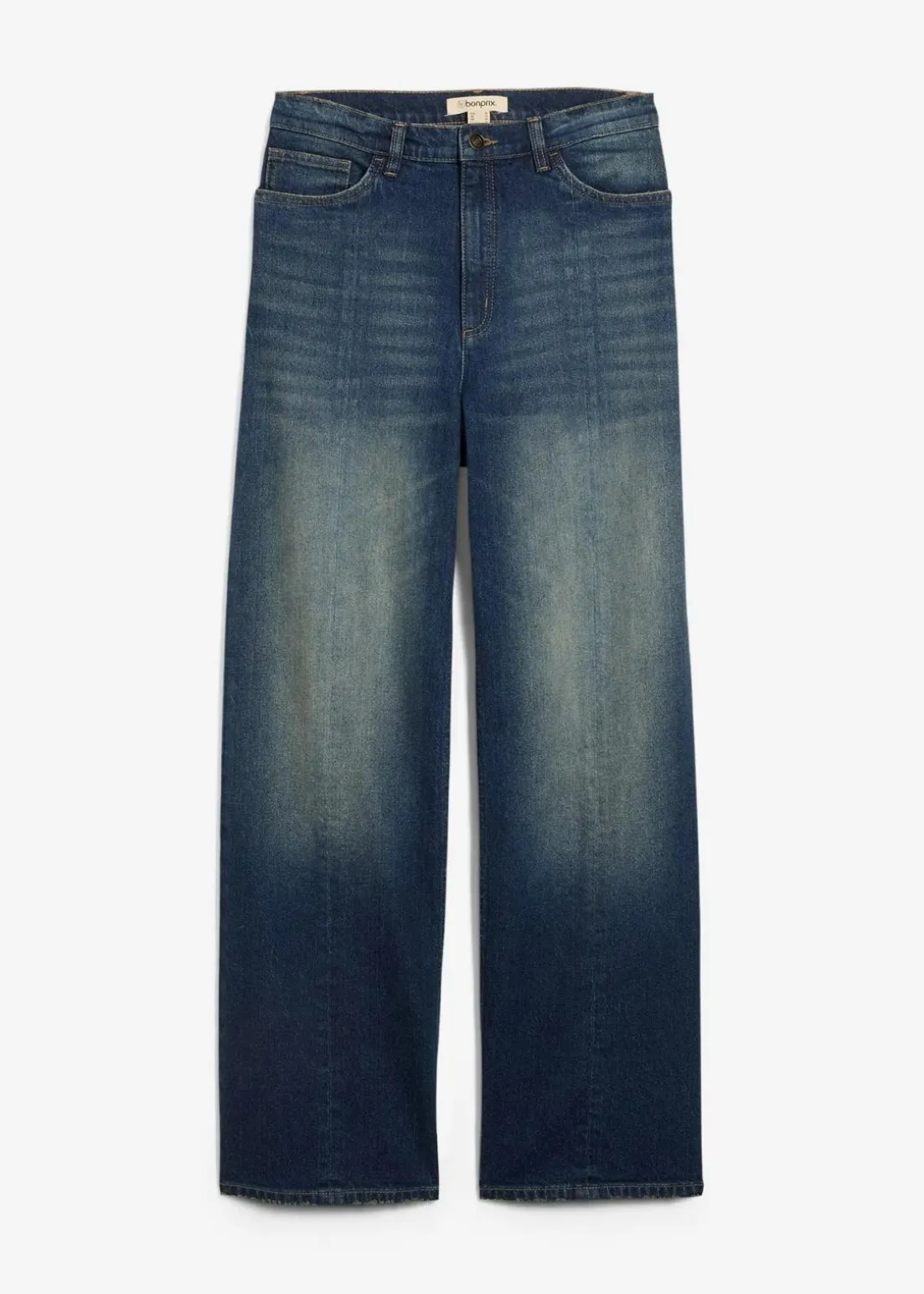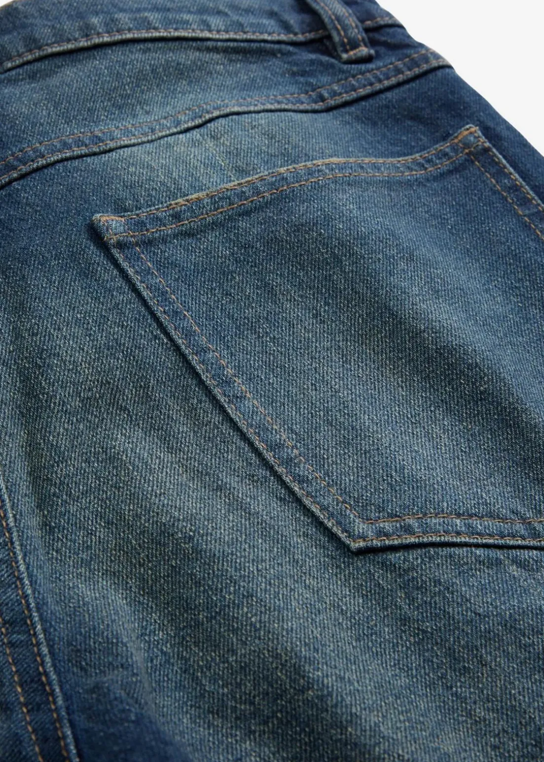 Gerade 5-Pocket-Jeans aus einem festen Baumwolldenim, der sich zunächst etwas steif anfühlt und durch häufiges Tragen weicher und lockerer wird. Hohe Bundhöhe mit Zip Fly und Knopf. Lange Länge, dass am Fuß ein leichter Satcking-Effekt entsteht. Diese Jeans hat durch das ausgewaschene Finish einen modischen Used-Effekt erhalten. Eine leichte Farbabgabe beim Tragen und in der Wäsche sind charakteristisch für diese Jeans. Innenbeinlänge in Gr. 42 ca. 78,5cm, maschinenwaschbar.