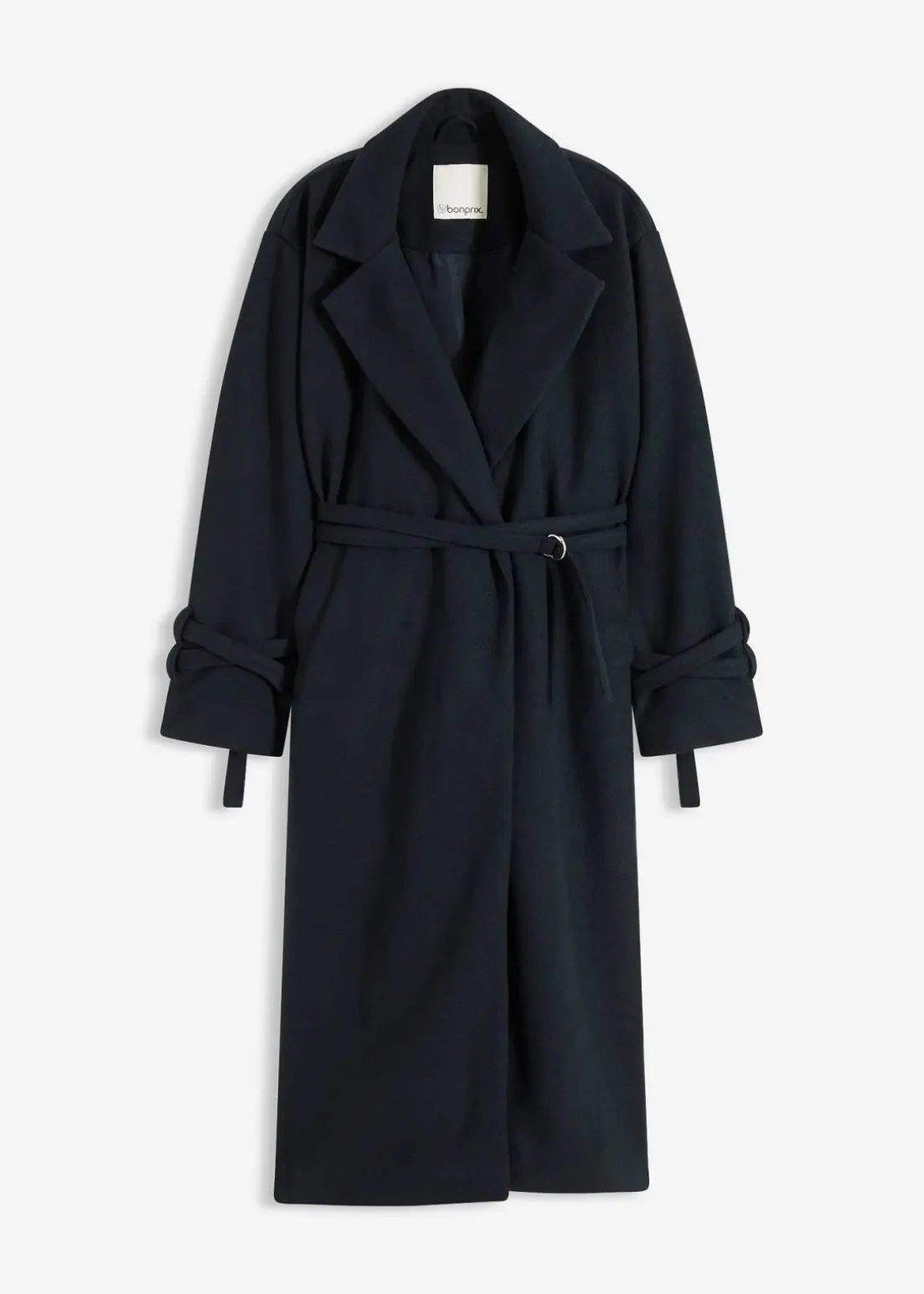 Oversized Mantel mit Bindegürtel und zweifacher Riegel an den Ärmeln