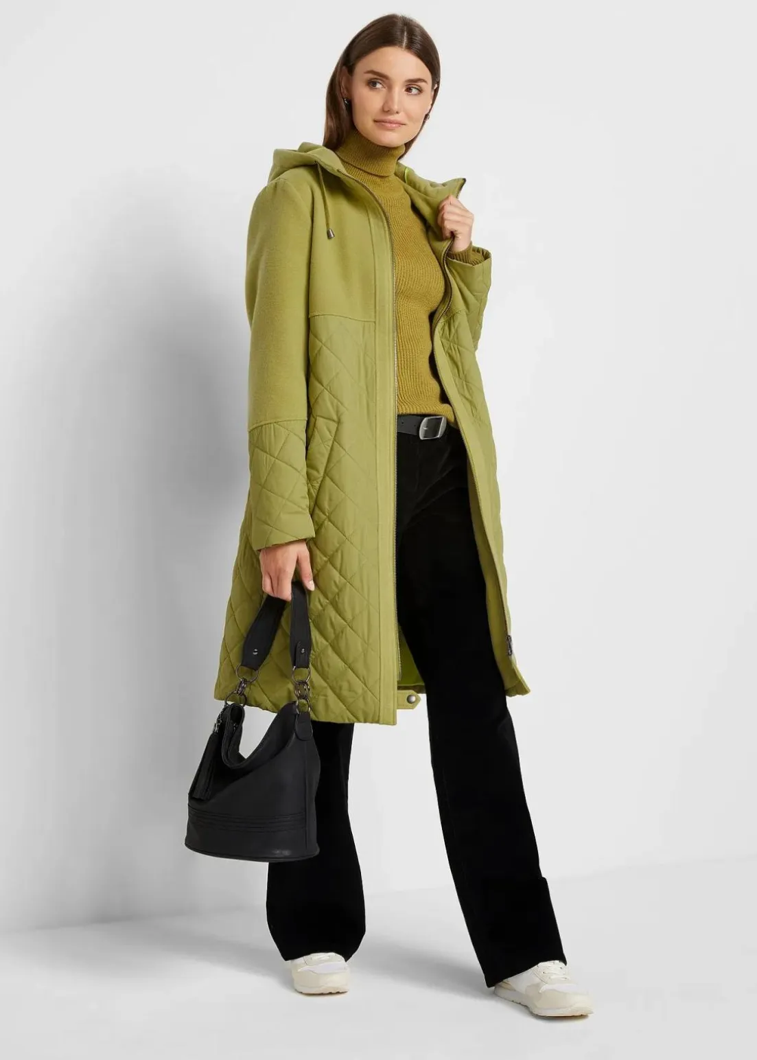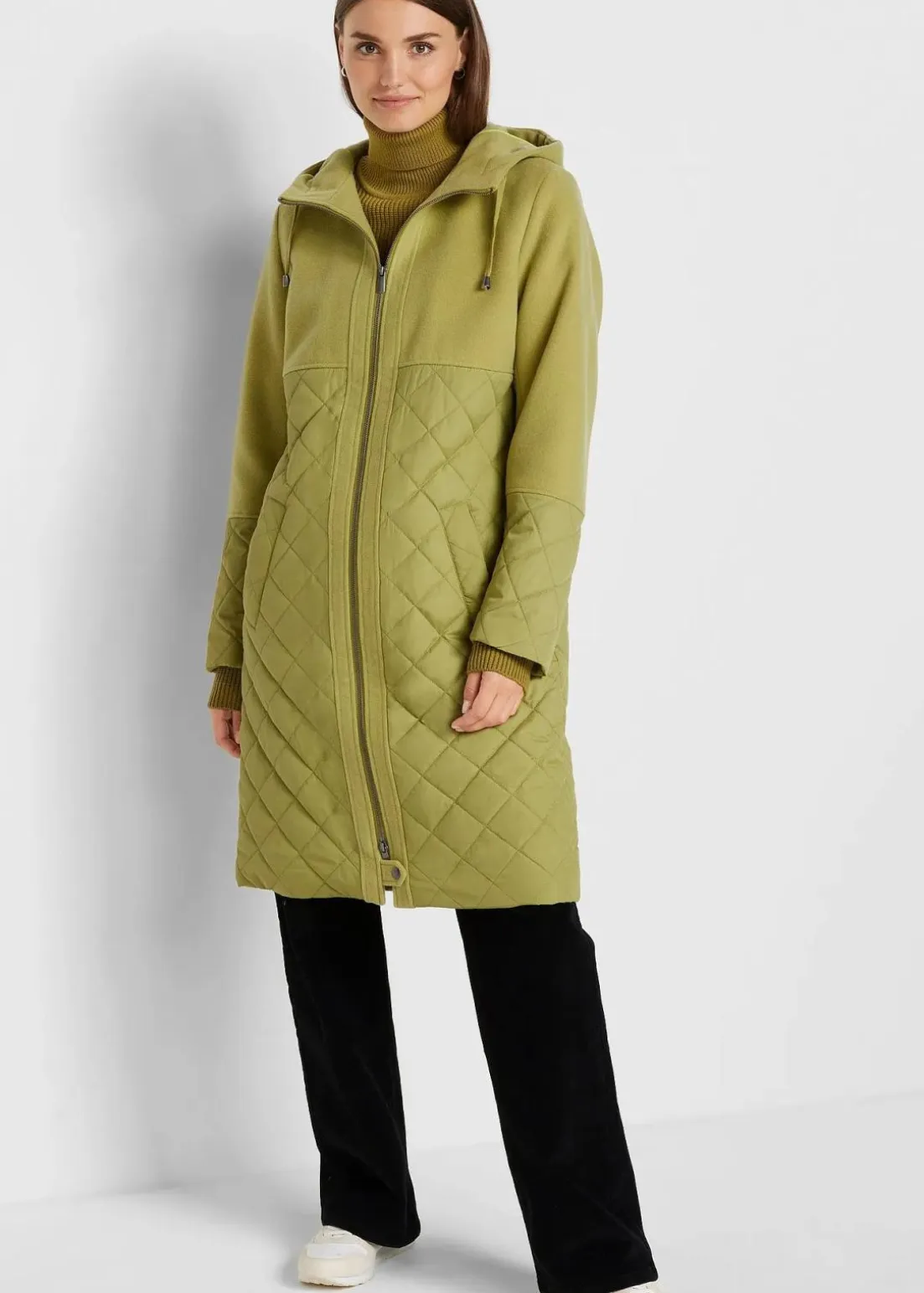Geschmackvoller Mantel mit Kapuze und geradem Schnitt aus einem ansprechenden Materialmix