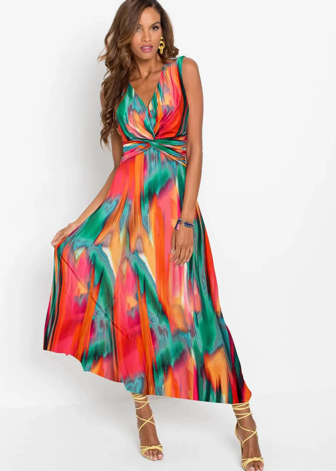 Sommerliches Kleid mit tiefem Ausschnitt mit farbenfrohem Print