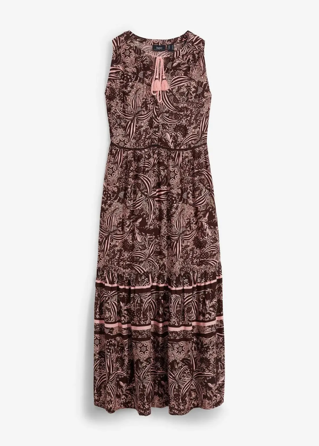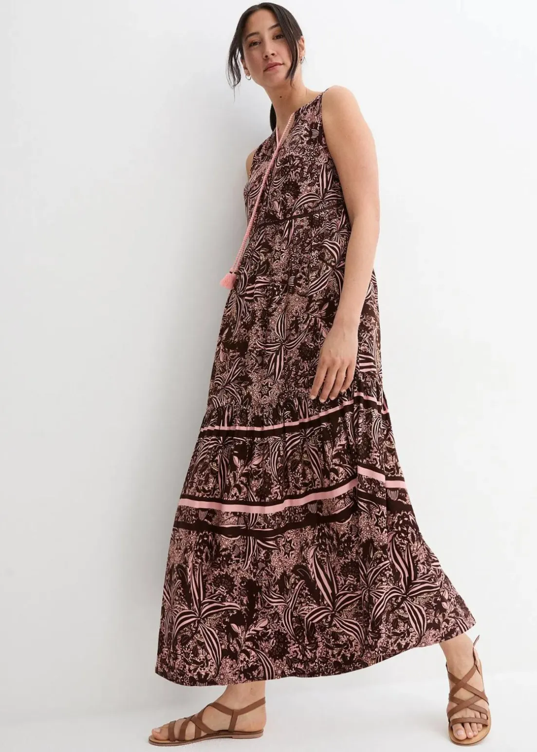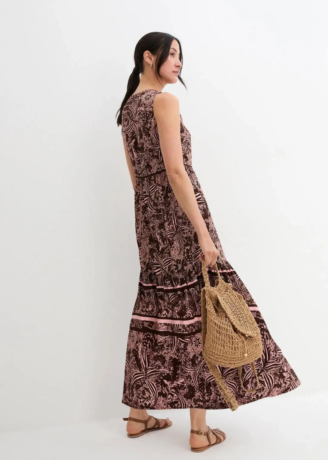 Maxi-Web-Kleid mit Bordürendruck aus fließender Viskose
