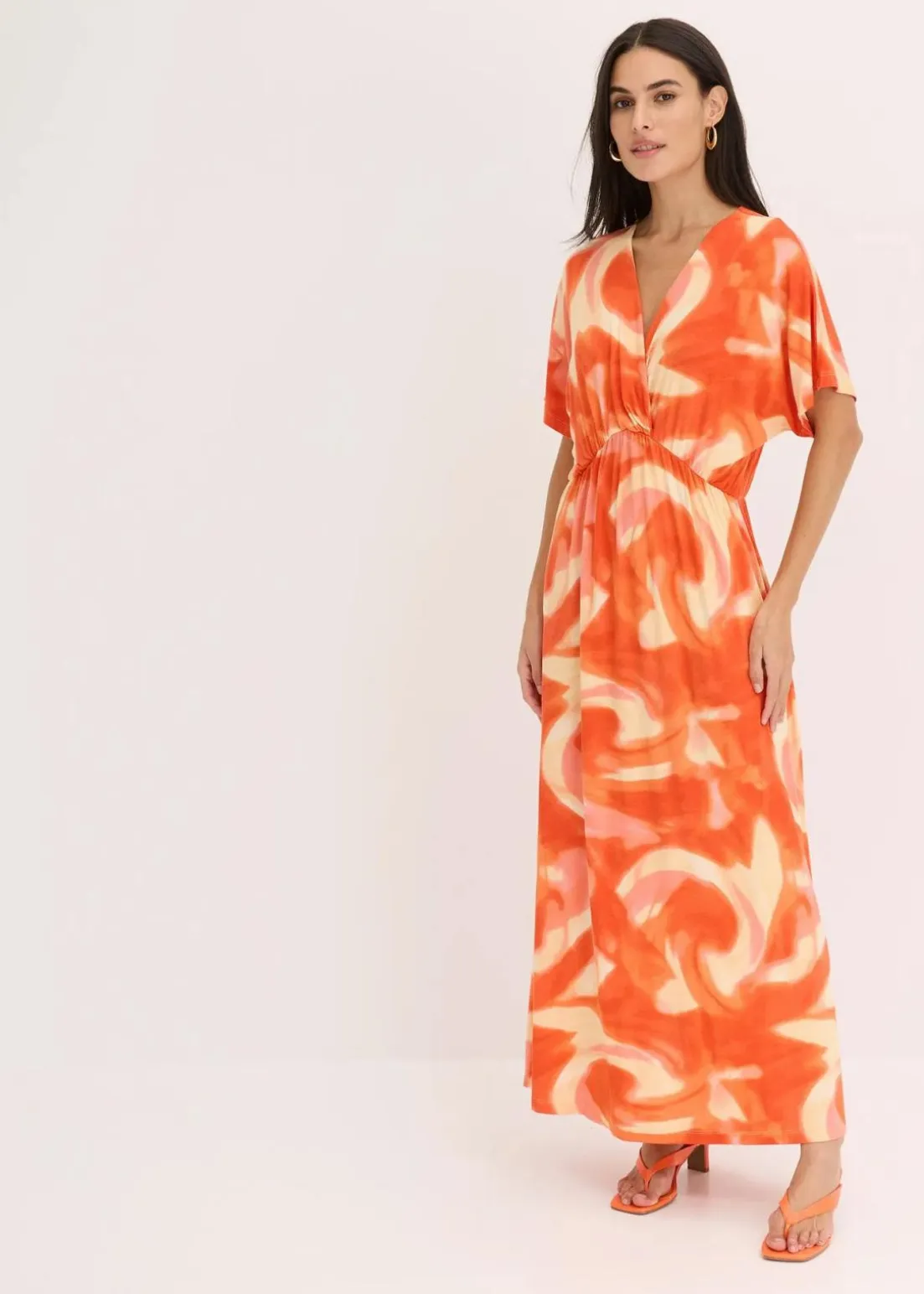 modisches Jersey-Maxikleid aus softem Viskose-Mix mit Drapierung vorne am V-Ausschnitt