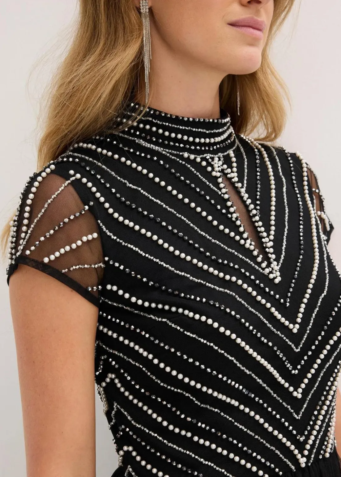 Moder und feminin: Abendkleid aus zartem Tüll mit Keyhole-Ausschnitt und Perlenstickerei im Oberteil
