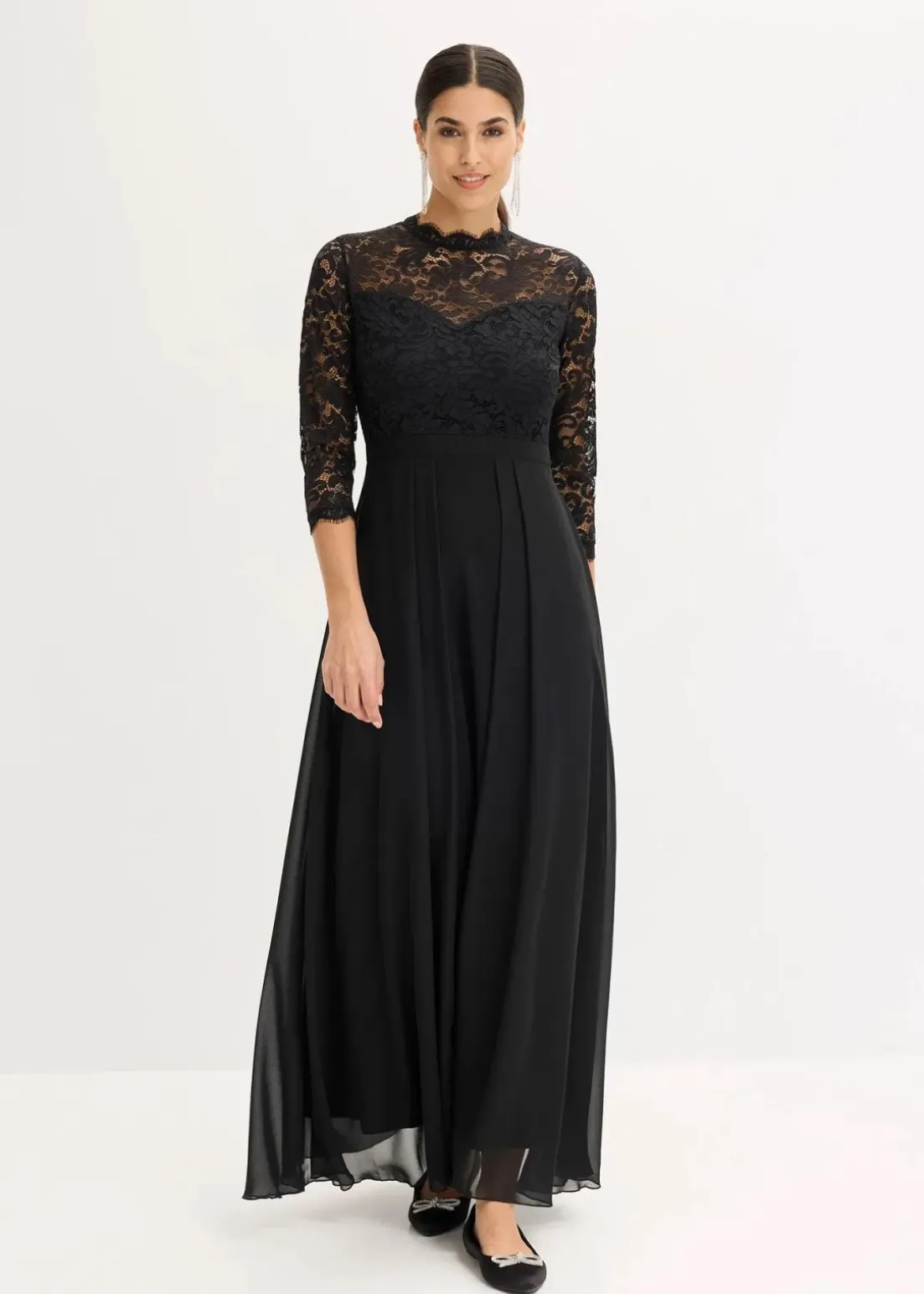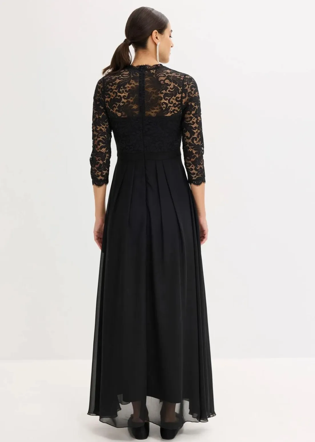 Bezauberndes Abendkleid mit Spitze im Oberteil und einem Rock aus strukturiertem Crepe sowie einem überlappendem Rock aus feinem Chiffon.