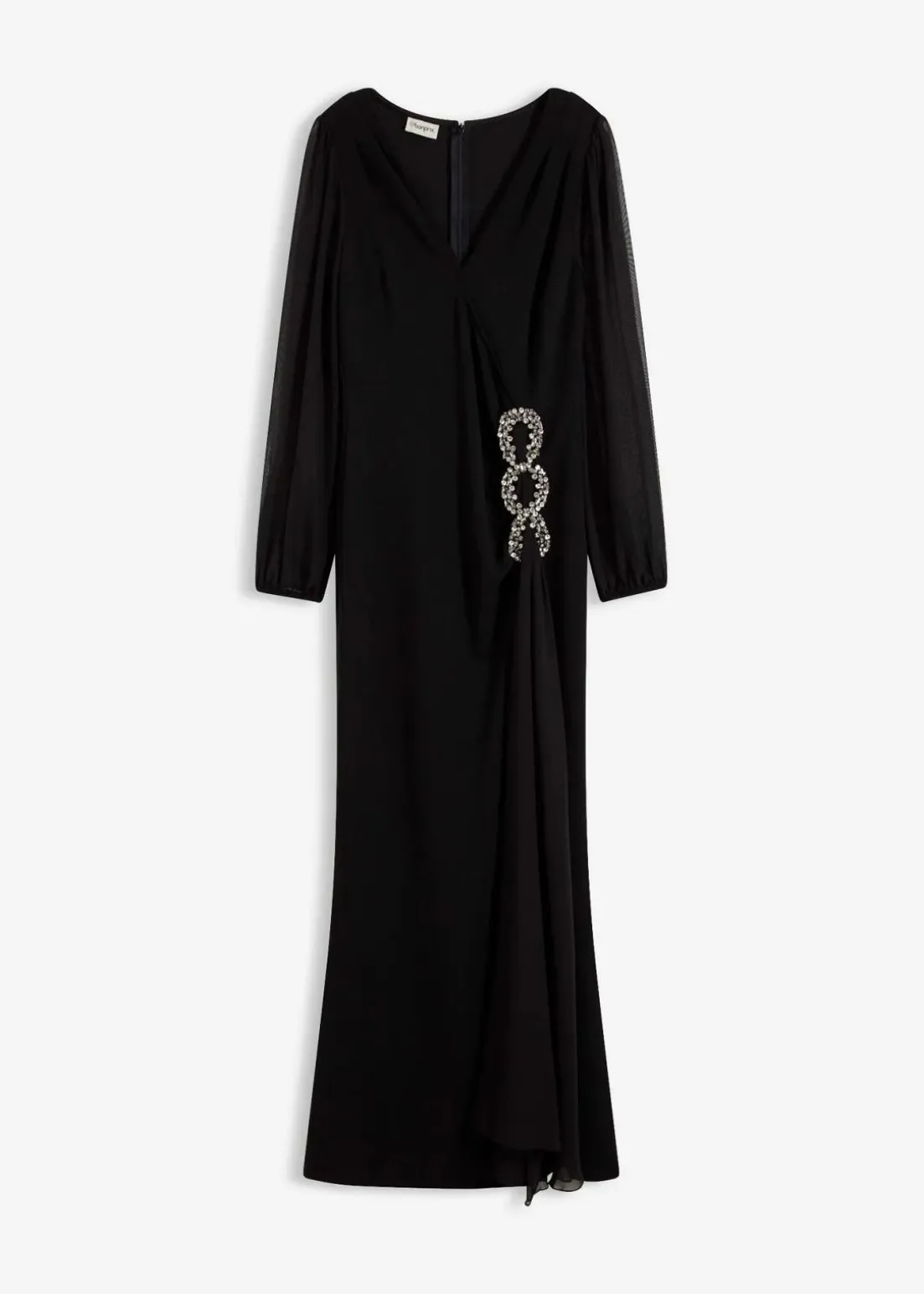 Modern und feminin: Abendkleid mit Ballon-Ärmel und Drapierung mit Strasstein-Applikation