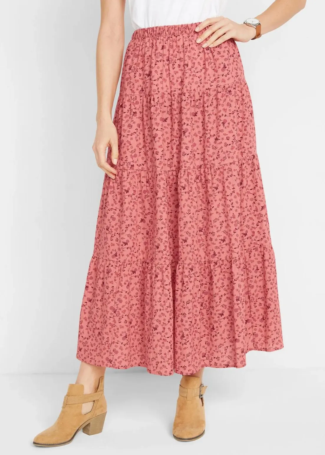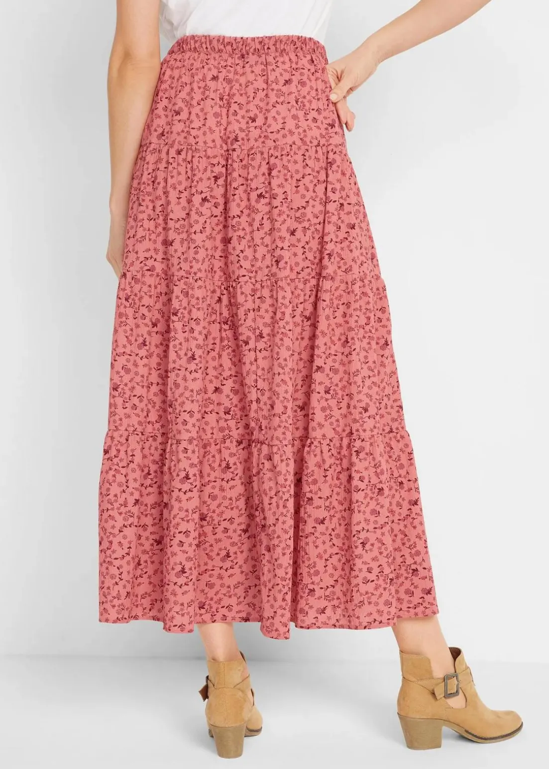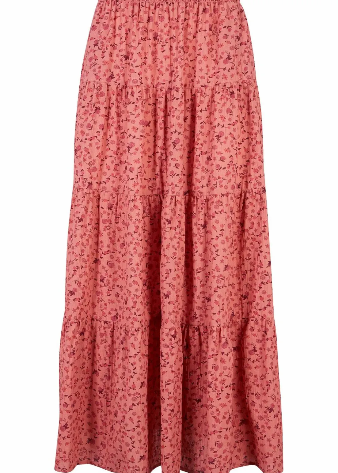 Baumwoll-Stufenrock mit Elastikbund in Maxi-Länge