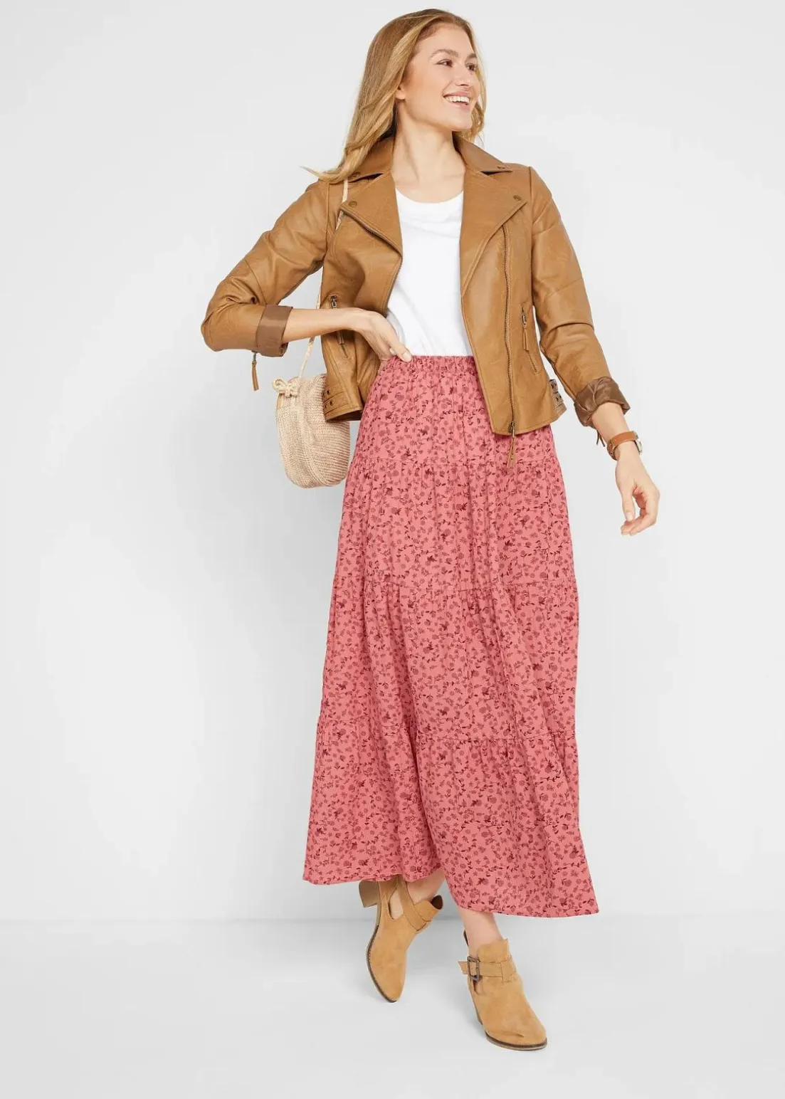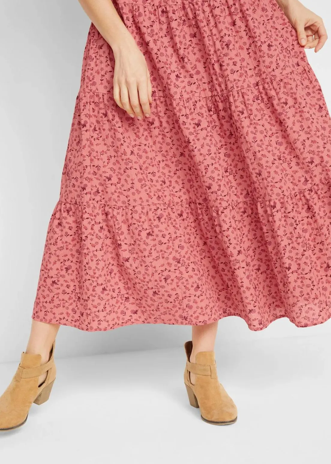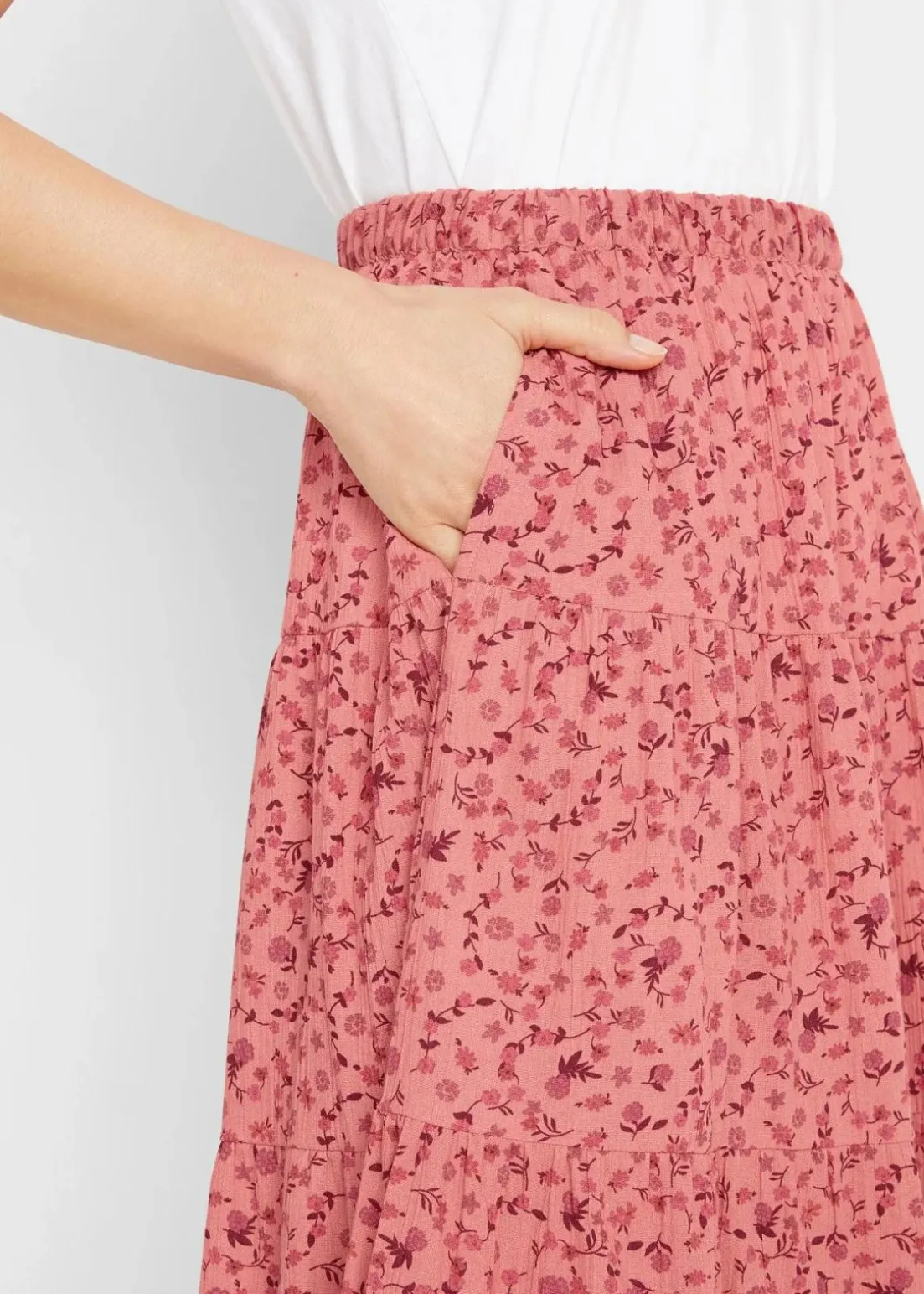 Baumwoll-Stufenrock mit Elastikbund in Maxi-Länge