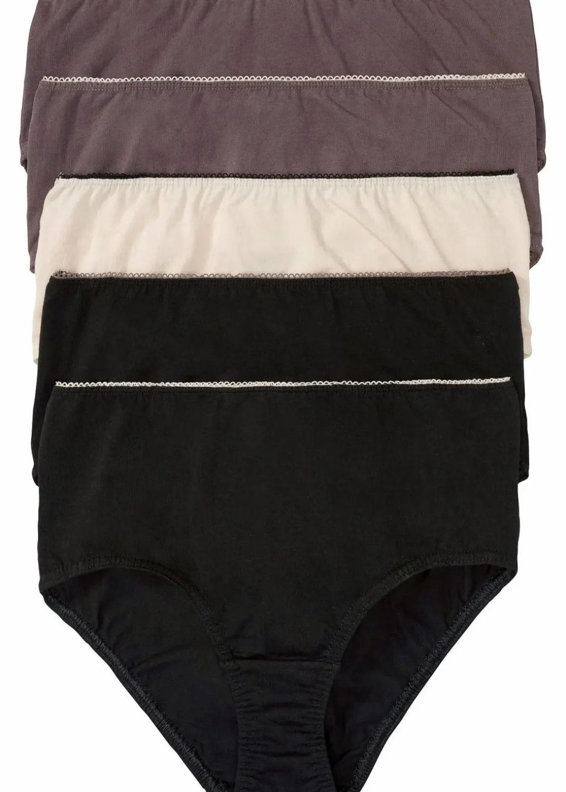 Der Maxislip der Marke bpc punktet mit seiner schönen Passform und gibt sich besonders trageangenehm. Das hautsympathische Material in Baumwollmix-Qualität mit Elasthan-Anteil bietet einen guten Sitz und ausreichend Bewegungsfreiheit. Kontrastfarbige Gummis am Bund setzen einen feinen Akzent. Der Zwickel besteht aus Baumwolle. Der hoch geschnittene Slip ist im praktischen Fünferpack erhältlich und eignet sich ideal für den Alltag.