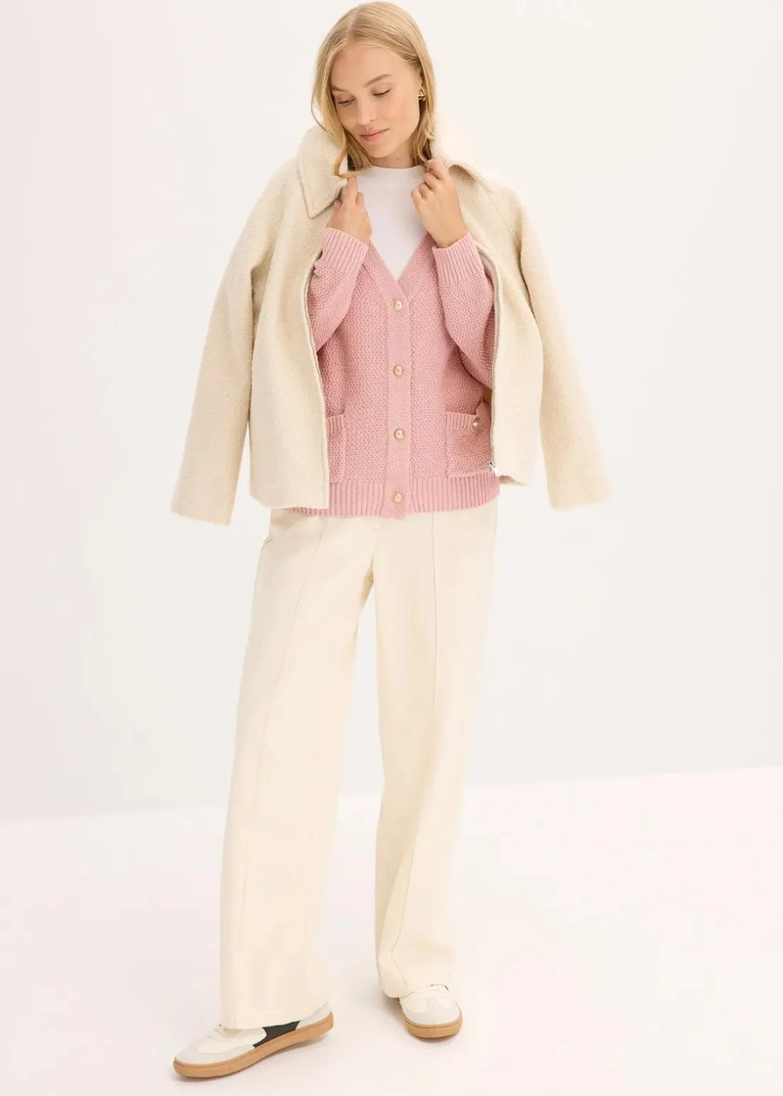 feminine Strickjacke mit goldfarbigen Knöpfen