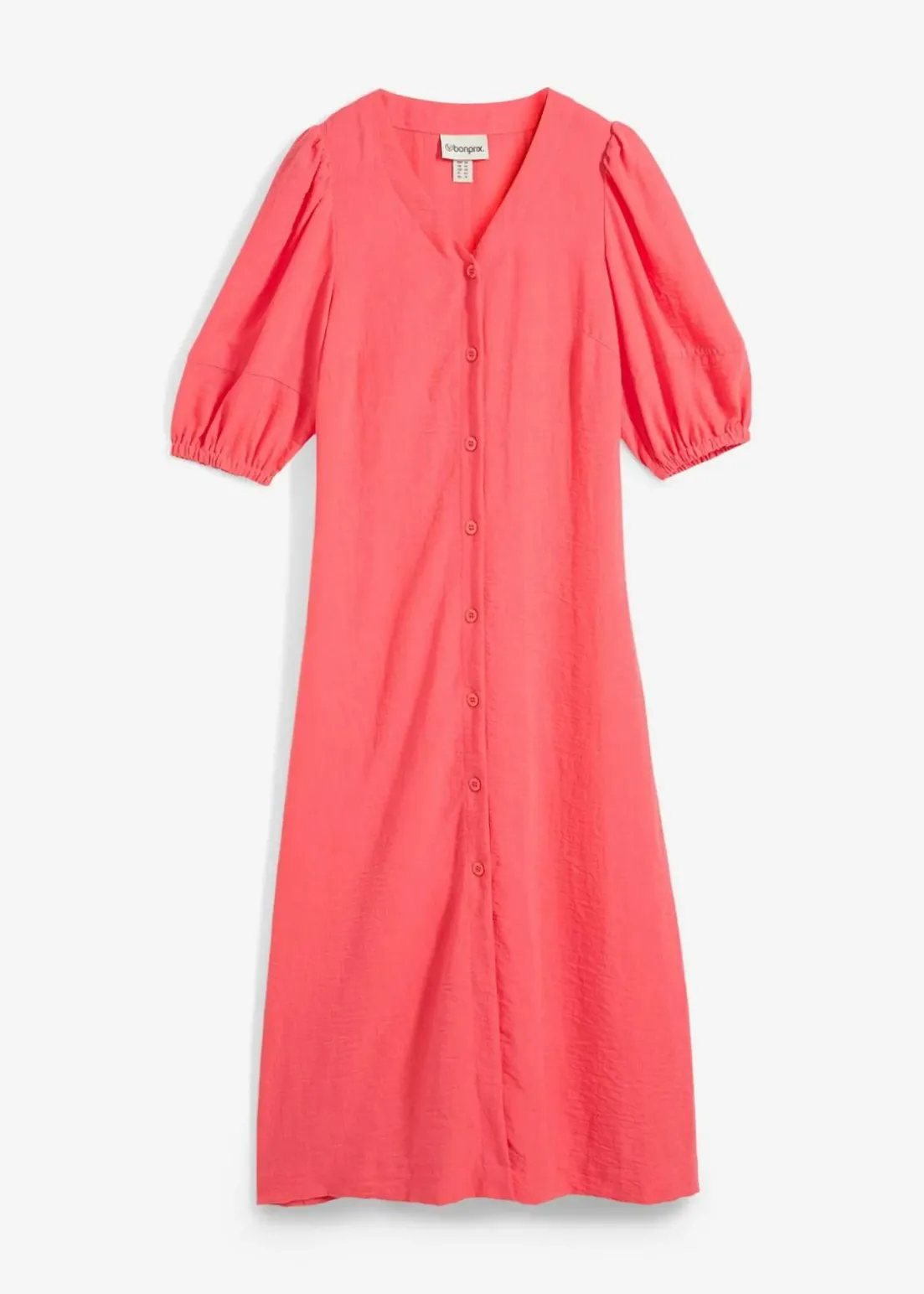 Langes Kleid mit Knopfleiste und Volumenärmeln