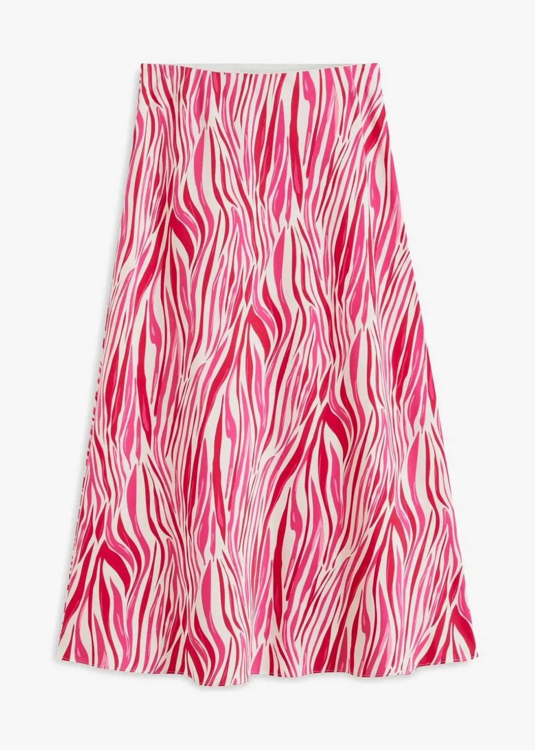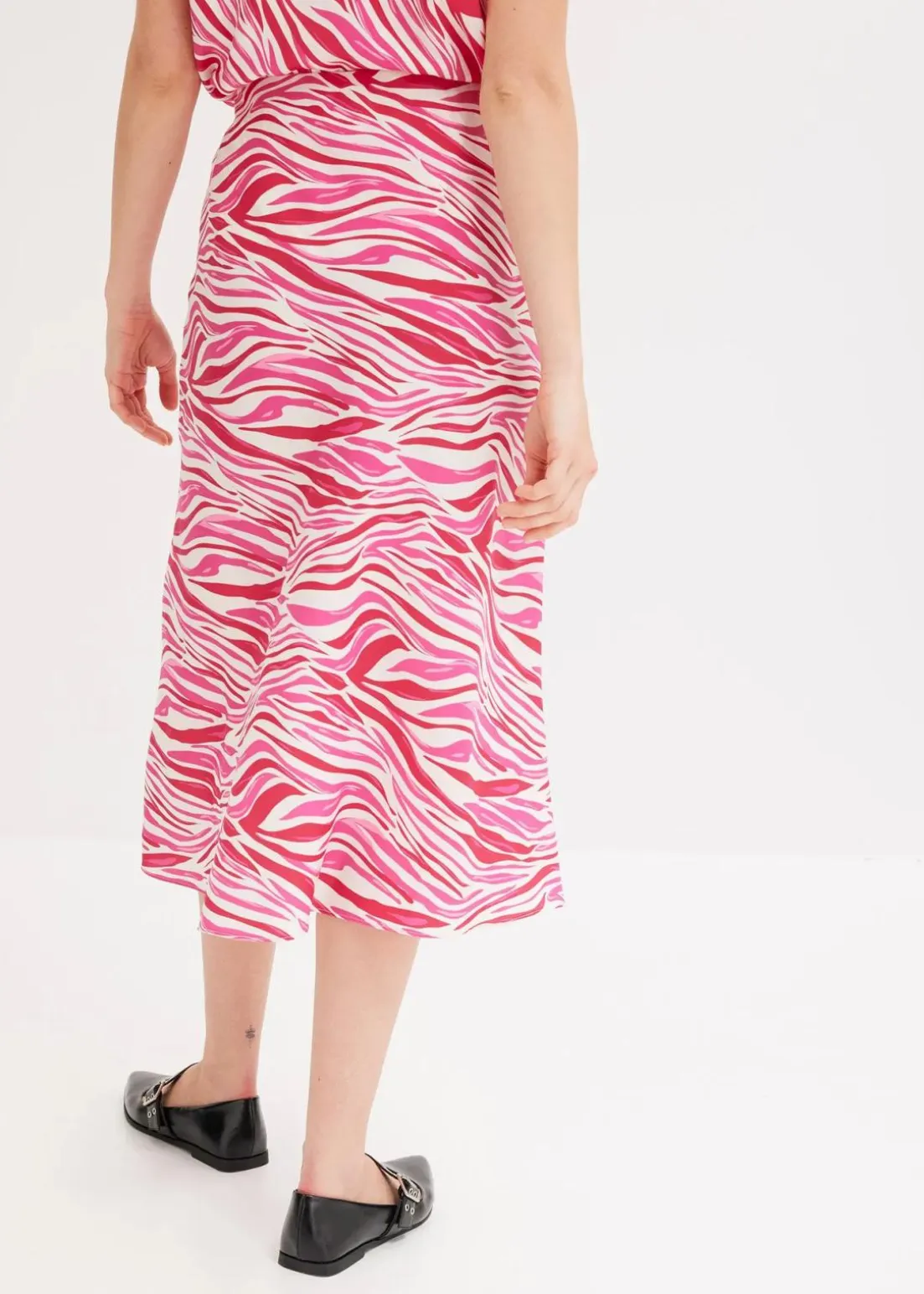 modisch bedruckter Midi-Rock aus fließendem Satin.