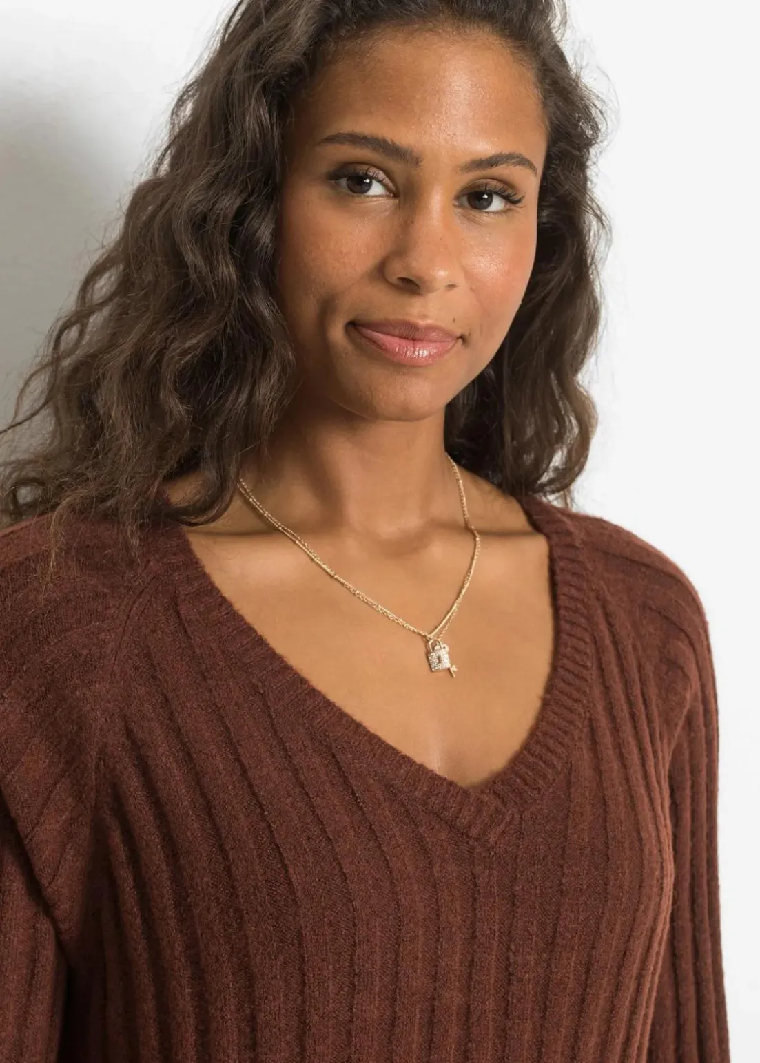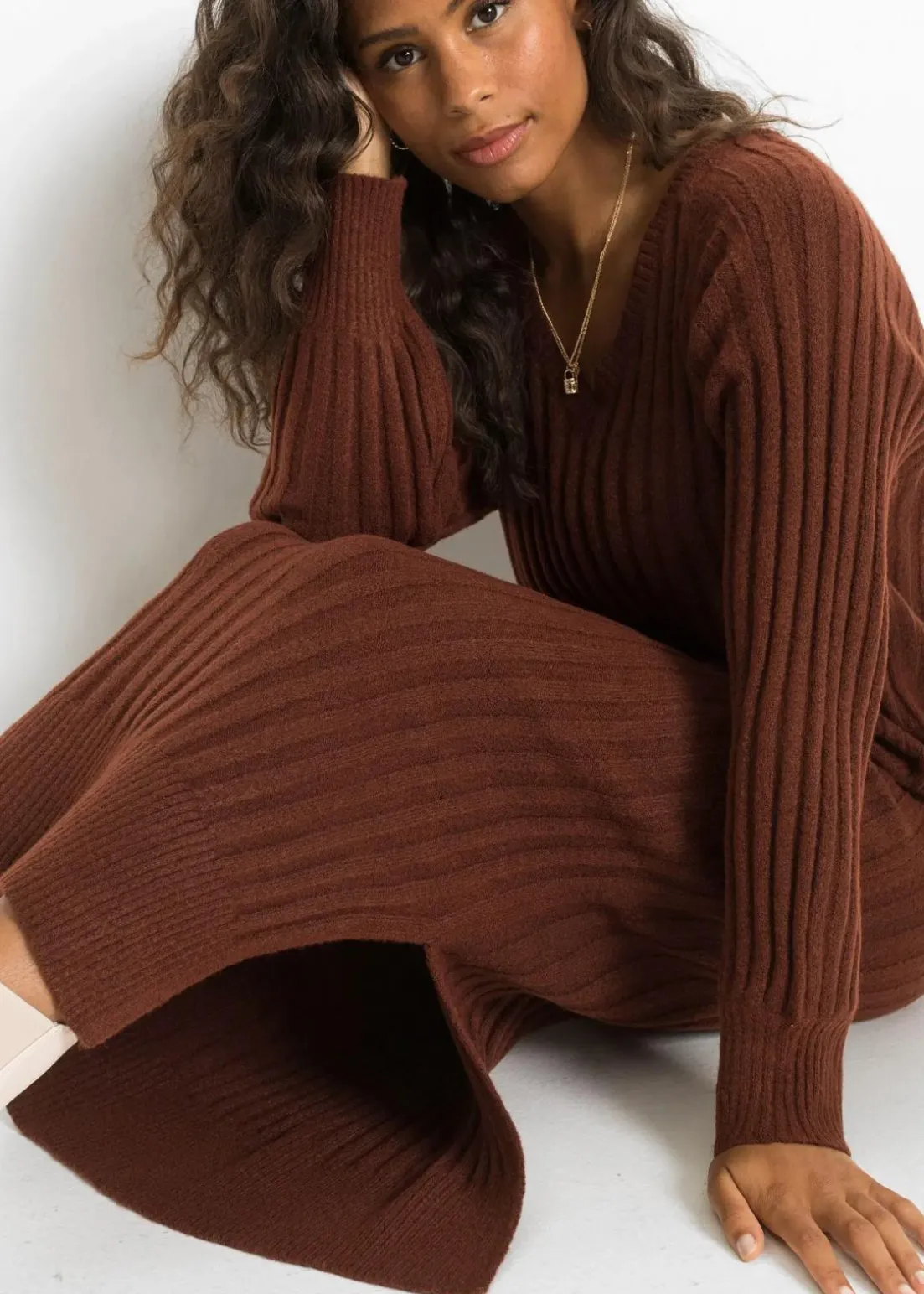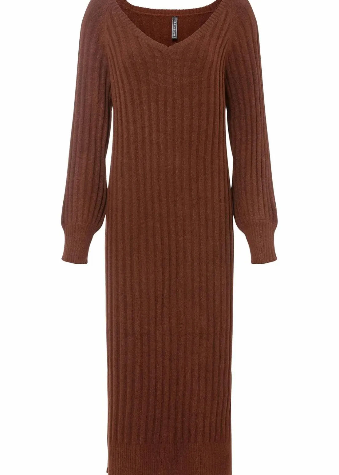 Midi Strickkleid mit Schlitz und V-Ausschnitt