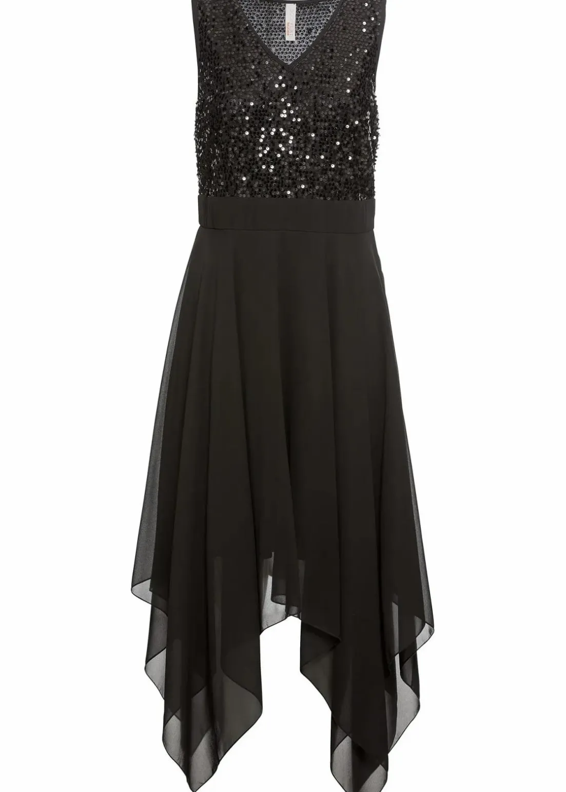 Ein Kleid mit Wow-Effekt – das ist dieses feminine Abendkleid mit Pailletten. Das extravagante Kleid von BODYFLIRT ist am ärmellosen Oberteil komplett mit Pailletten bestickt. Der tiefe V-Ausschnitt und die Raffung in der Taille sorgen für eine tolle Silhouette. Der fließende Rockteil mit Zipfelsaum setzt die Beine apart in Szene.Am besten wirkt dieses hinreißende Abendkleid zu eleganten High Heels und filigranem Schmuck.
