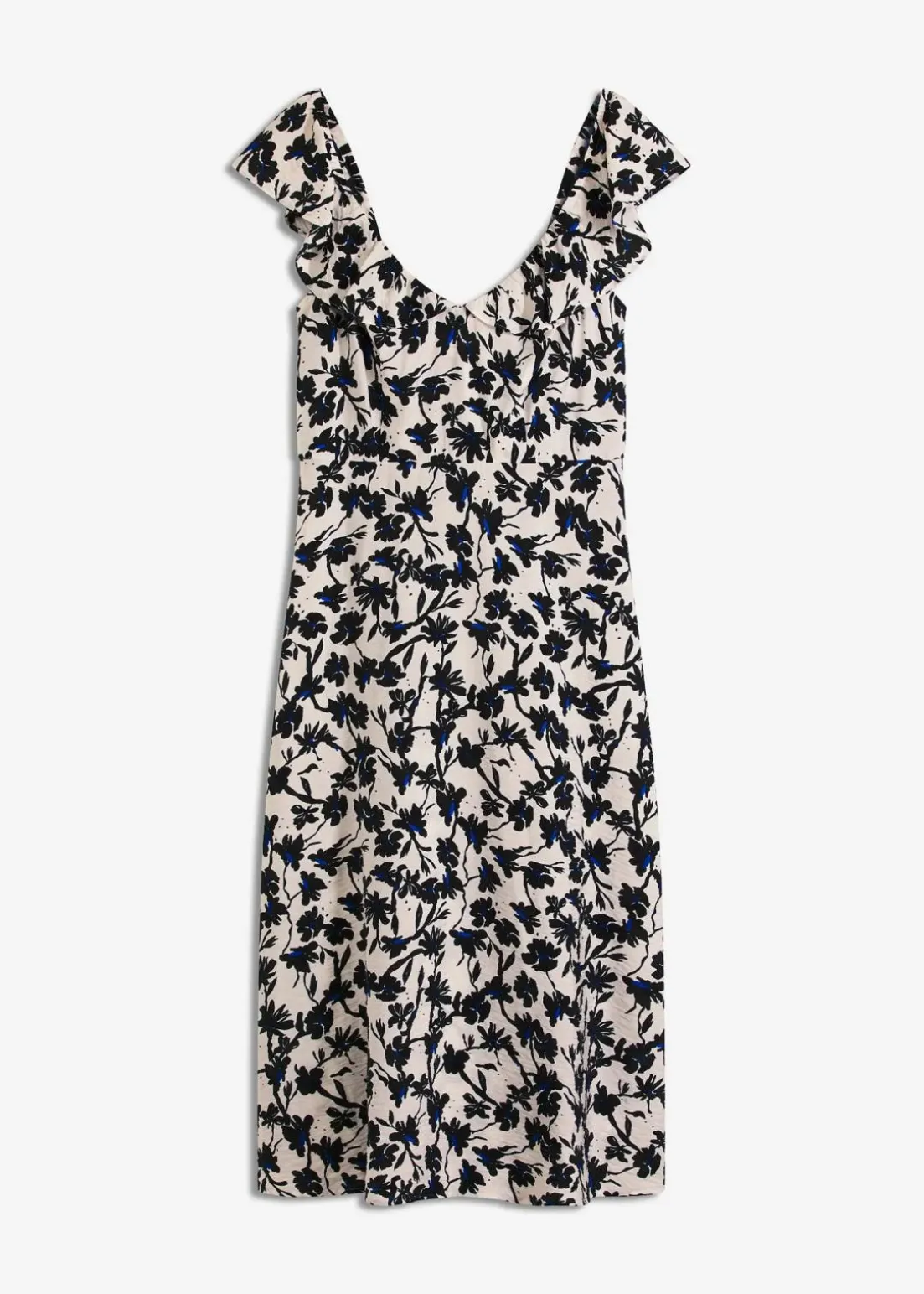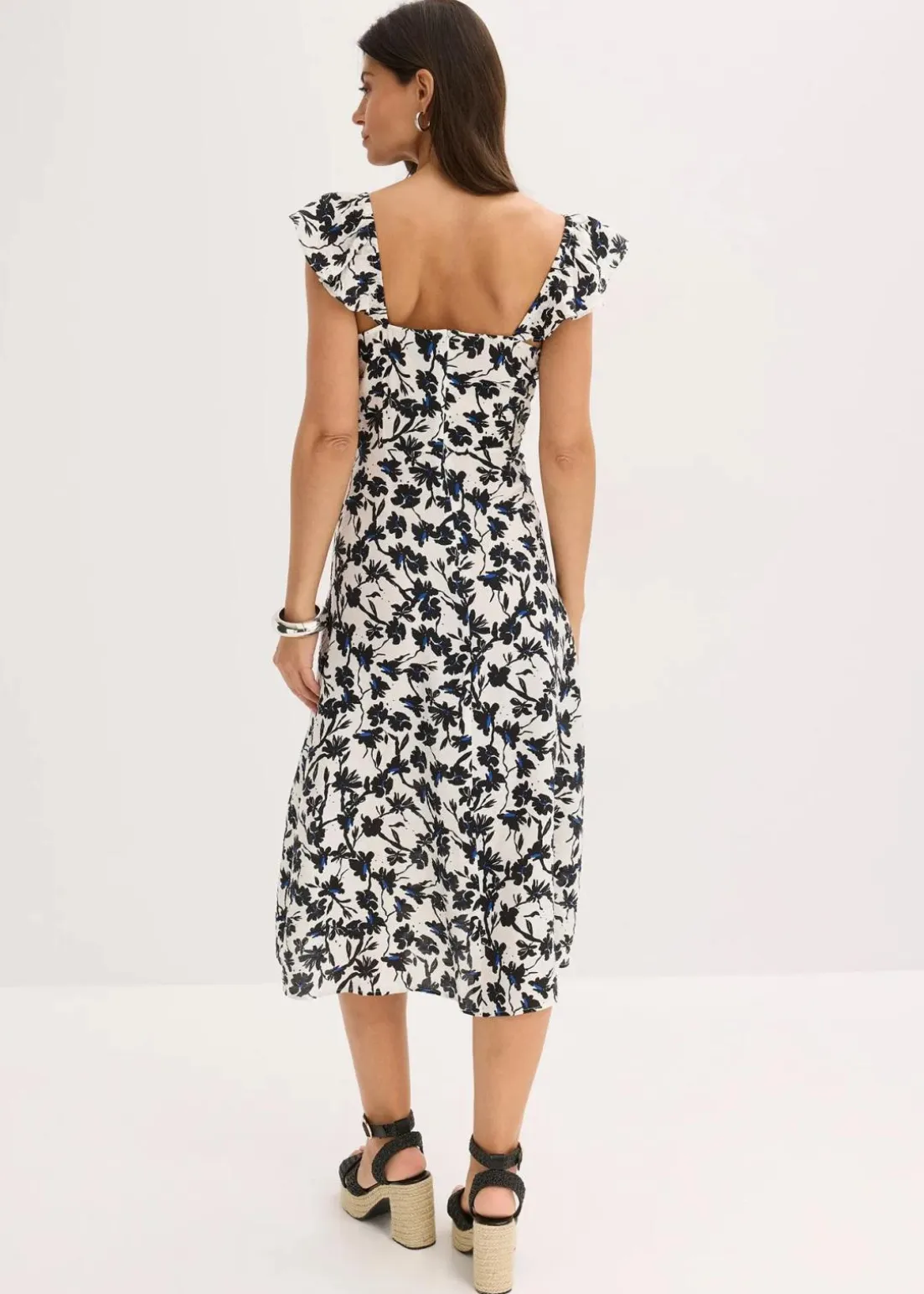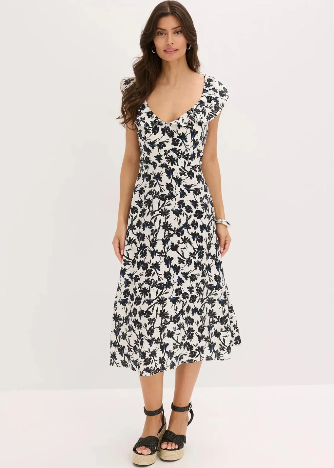 Weit schwingendes Kleid mit Rüschenausschnitt