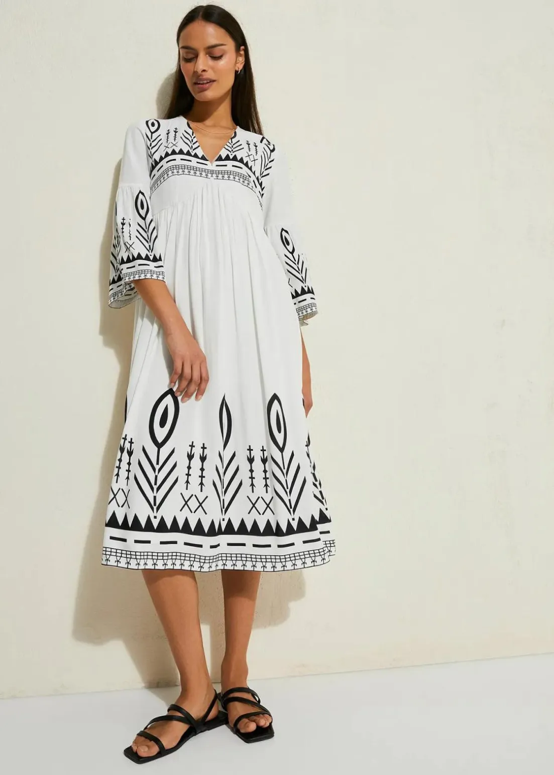 Weit schwingendes Kleid mit kontrastreichen Ikat-Druck