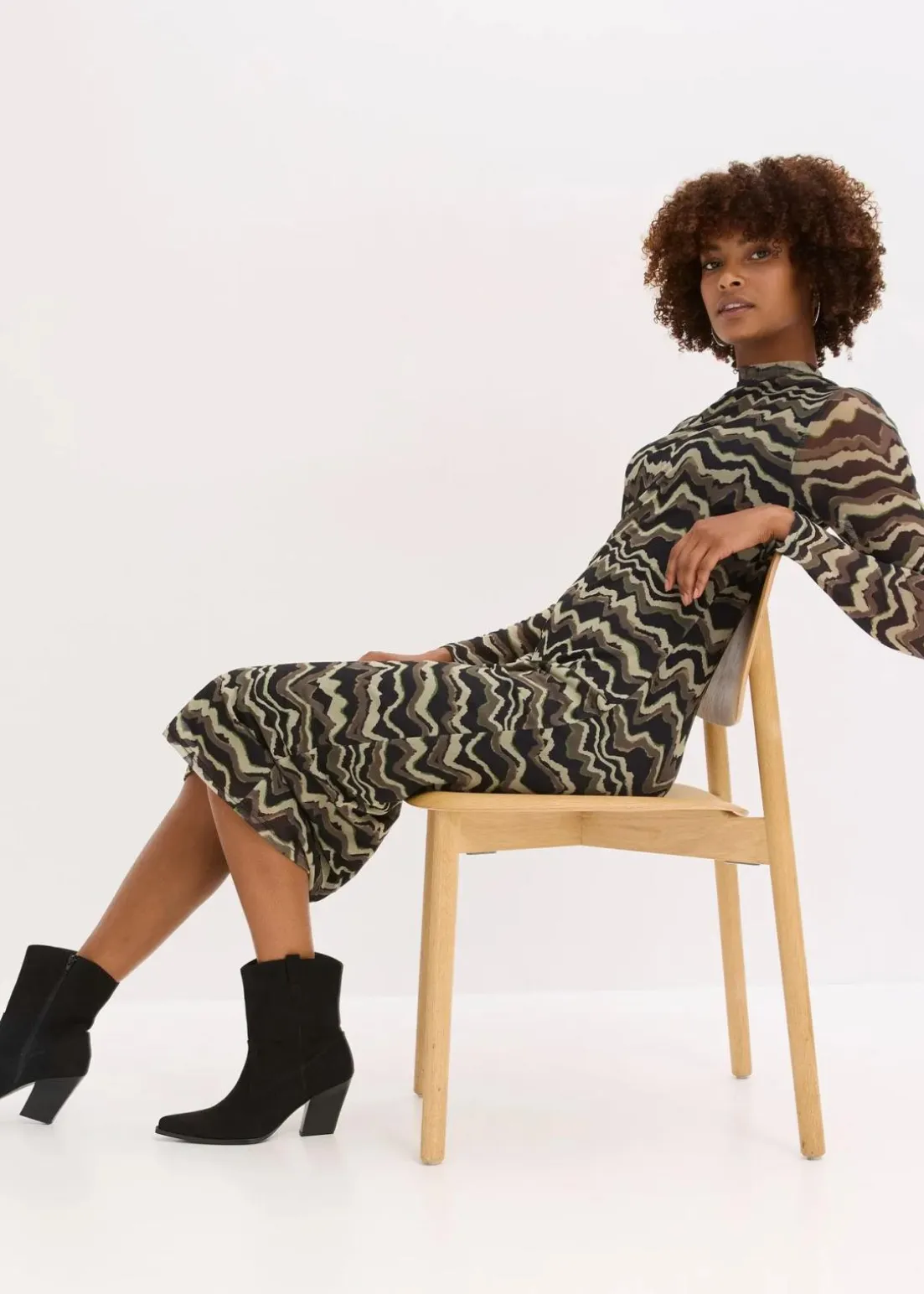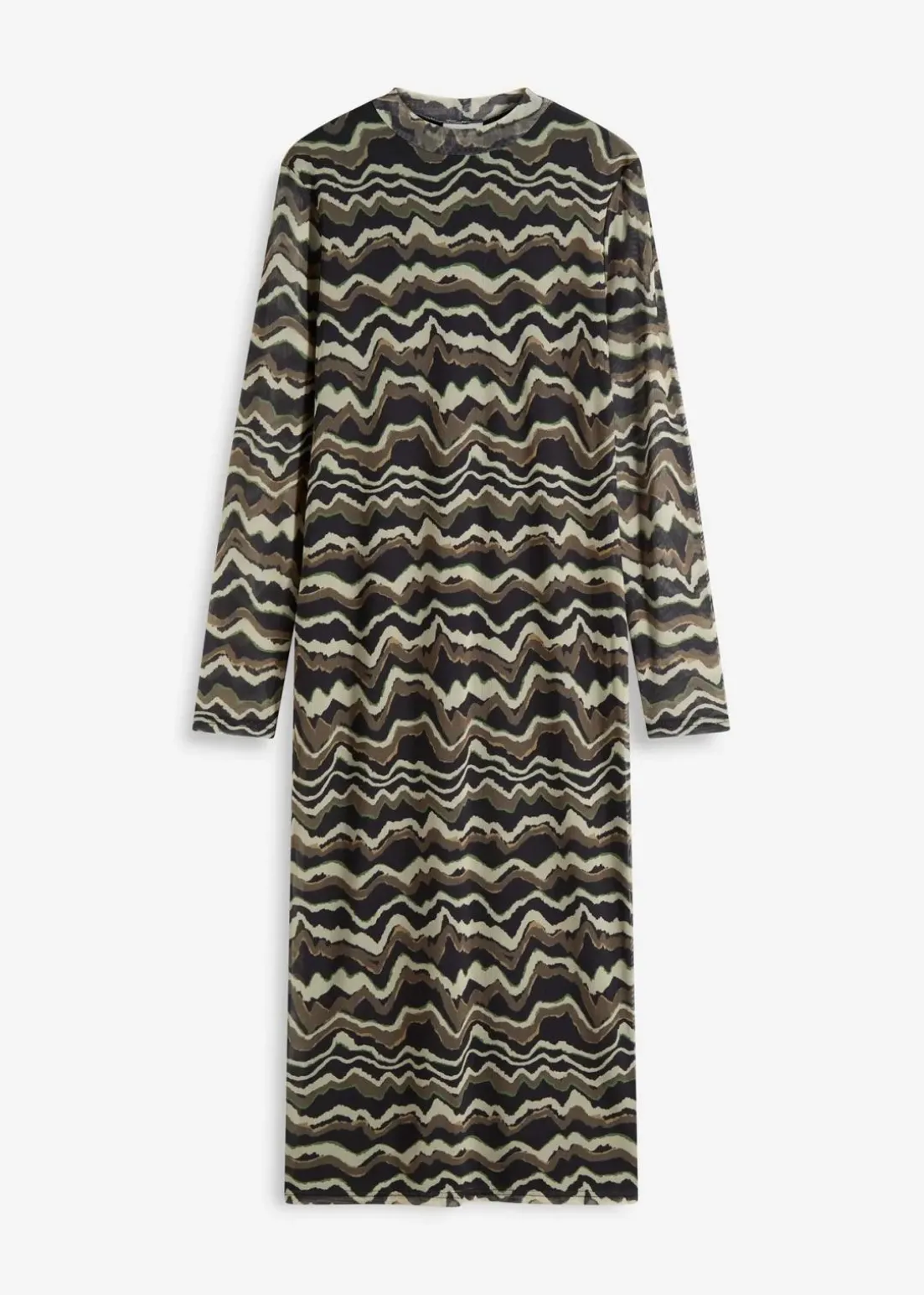 modisch bedrucktes Jersey-Midikleid aus softem Mesh mit Stehkragen
