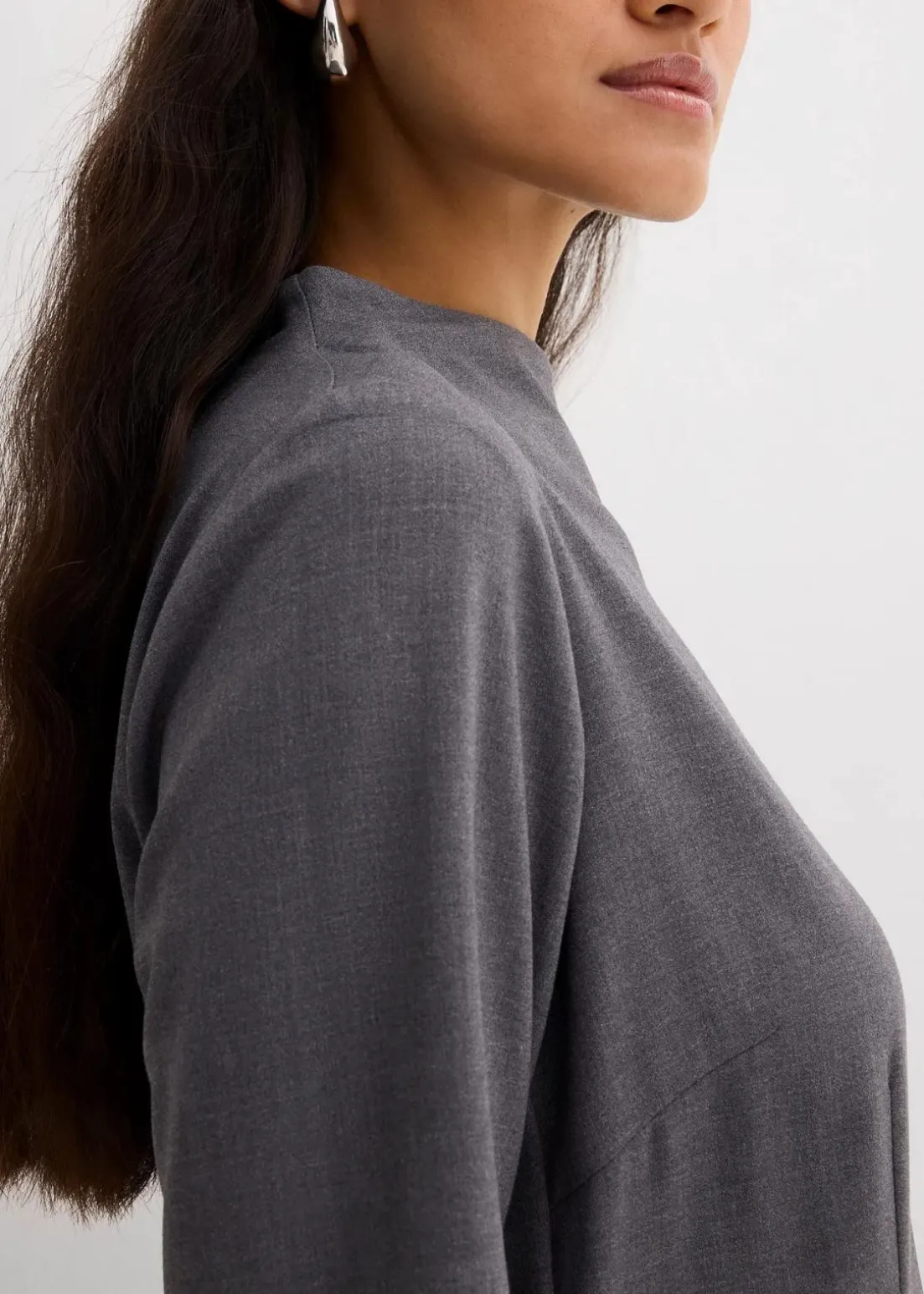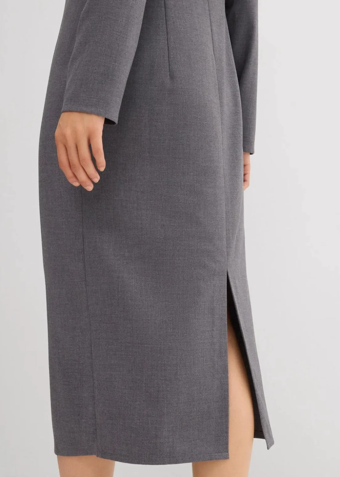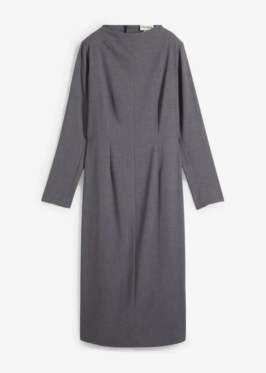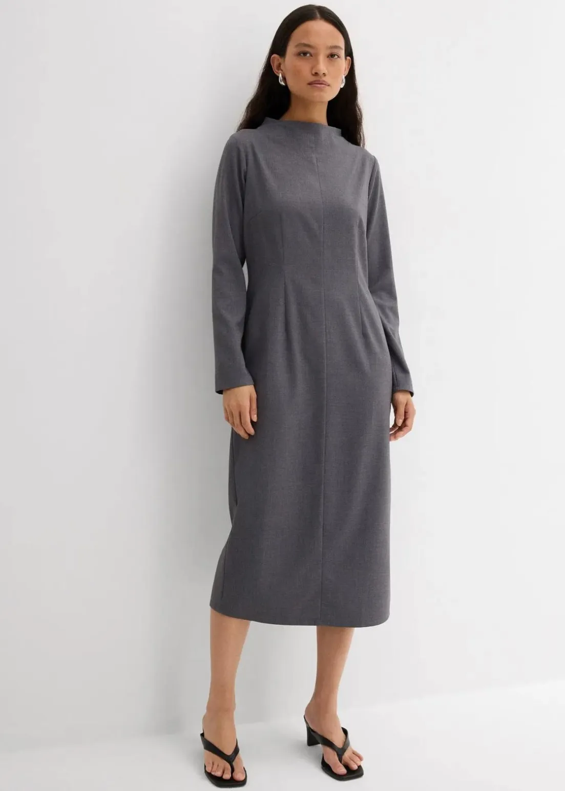 Hochgeschlossenes Midikleid mit Abnähern sowie Teilungsnähten vorne und hinten sowie einer Reißverschlussöffnung am Rücken