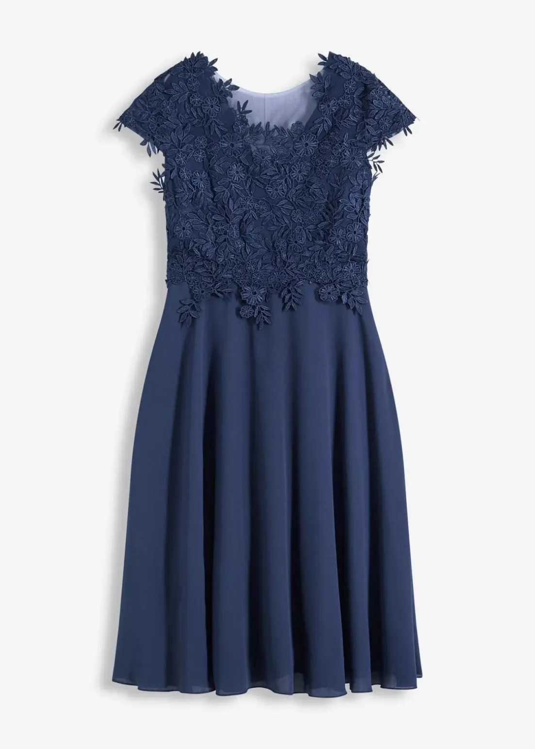Romantisch und feminin: Cocktailkleid in Midi-Länge aus zartem Tüll mit Spitze