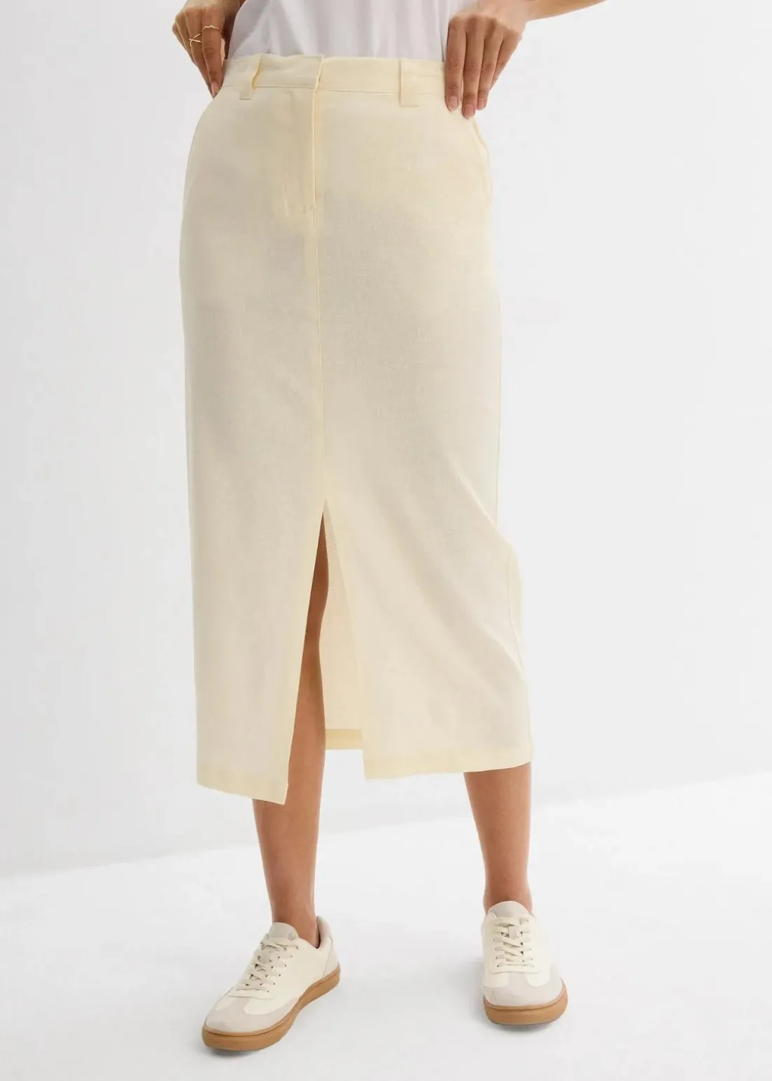 Midi-Rock mit Schlitz vorne, sowie Taschen und elastischem Bund hinten