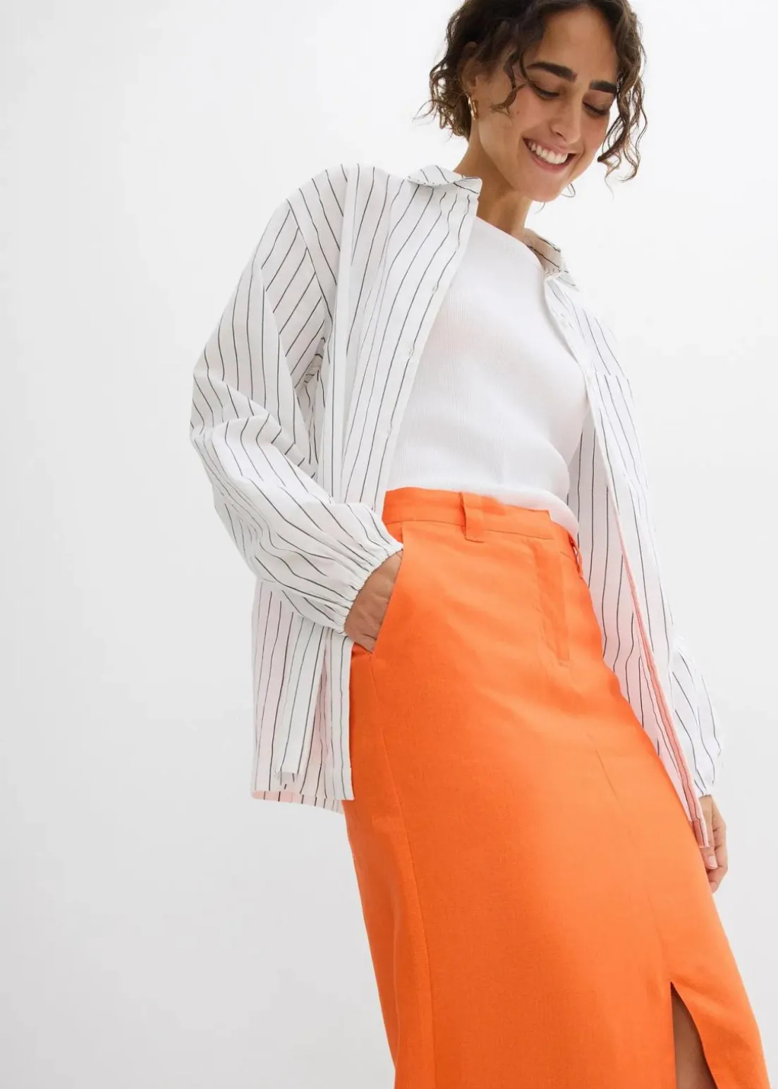 Midi-Rock mit Schlitz vorne, sowie Taschen und elastischem Bund hinten