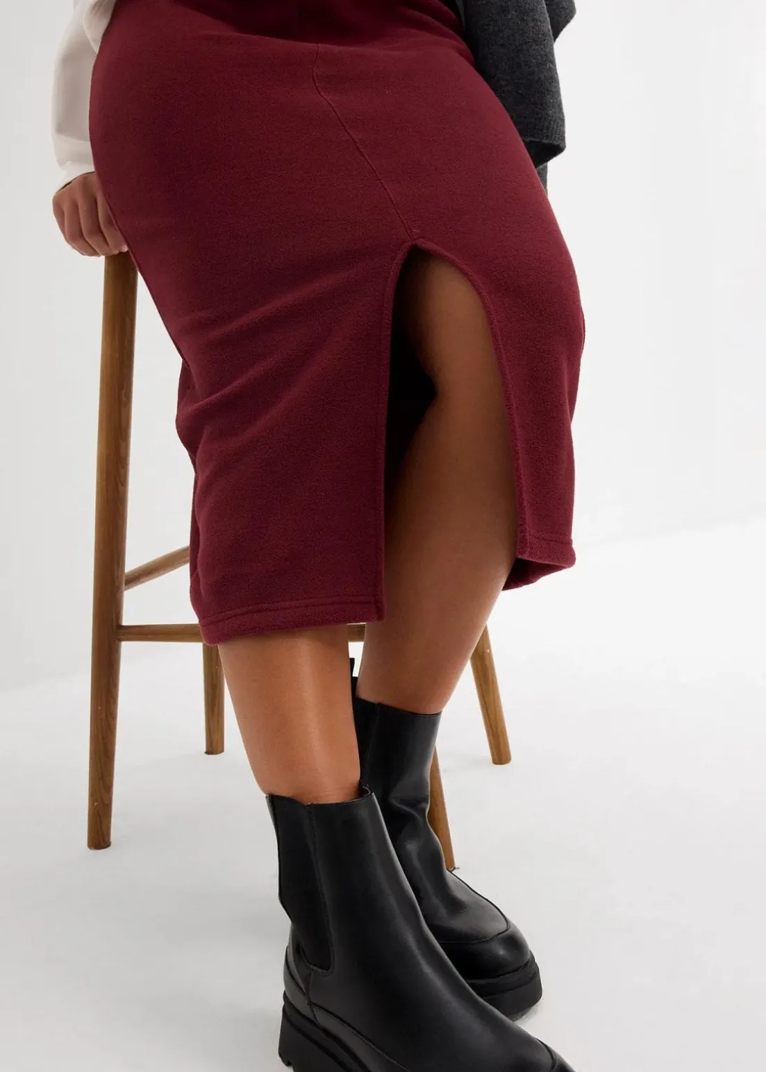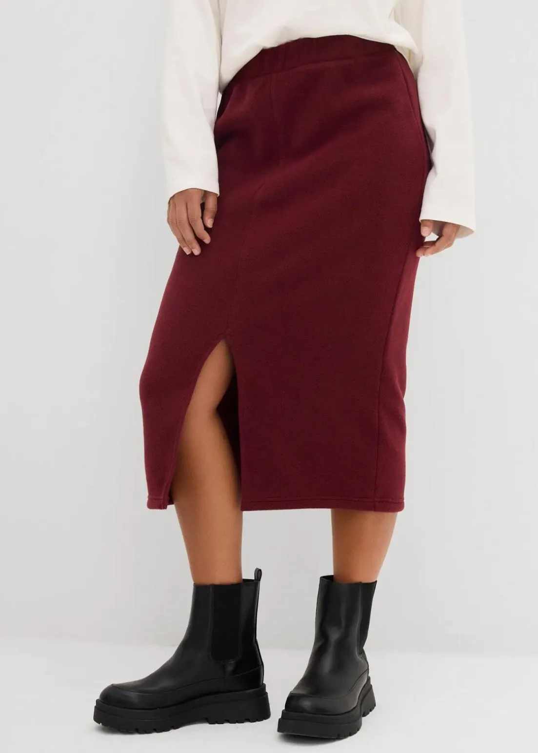 Midirock mit elastischem Bund und vorderem Beinschlitz.