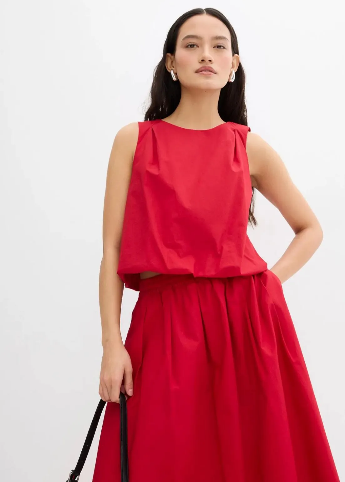 High-waist Midi Rock mit seitlichen Taschen, elastischem Bund und ausgestelltem Saum