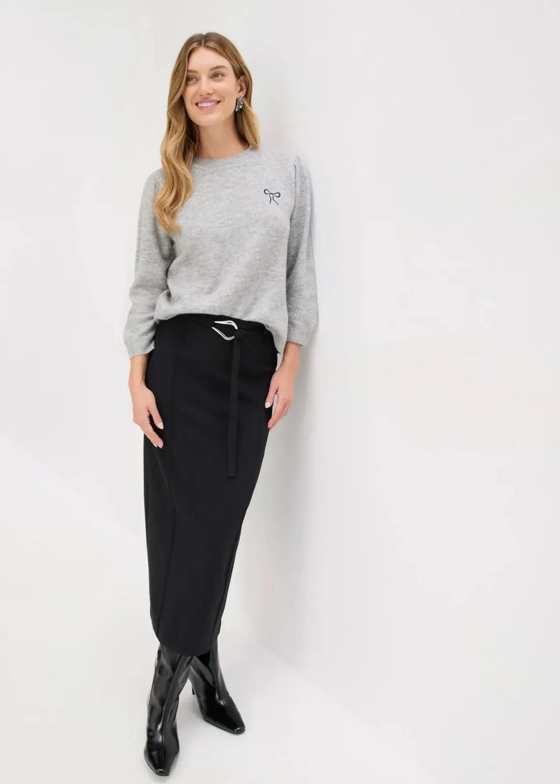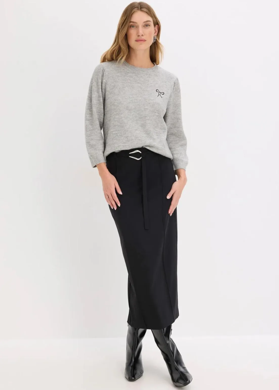Langer schmaler Rock mit Bindegürtel und Zierschnalle