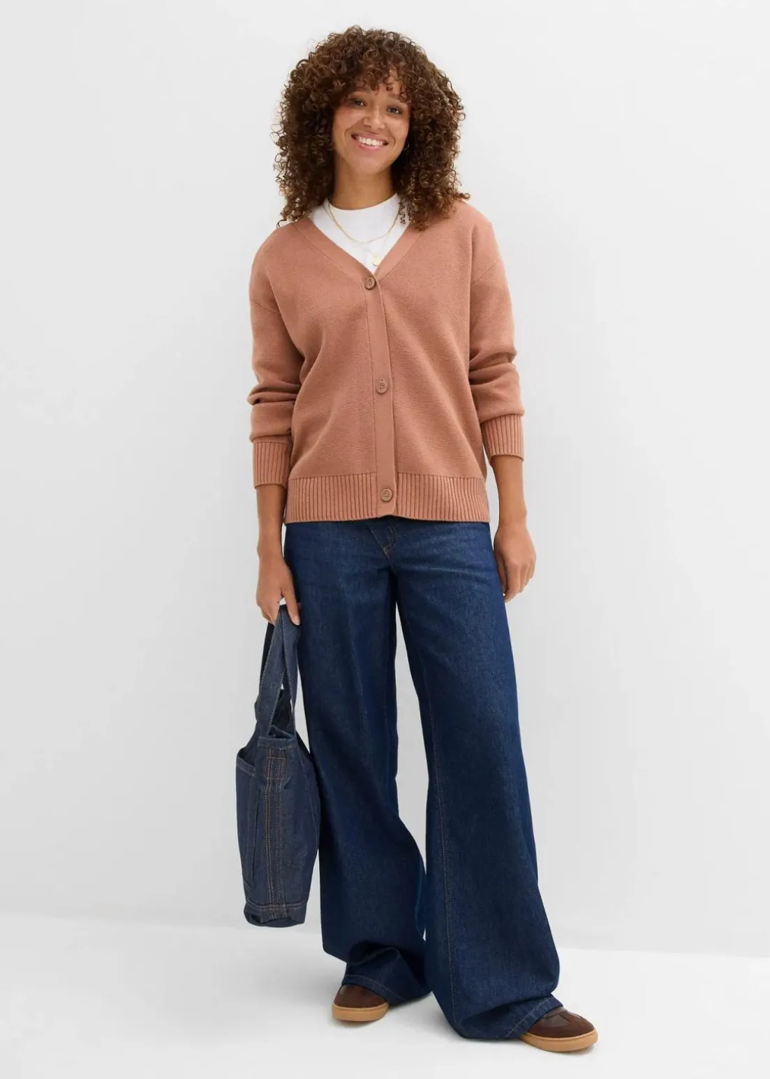 Bequeme Milano Rib-Strickjacke mit Knöpfen