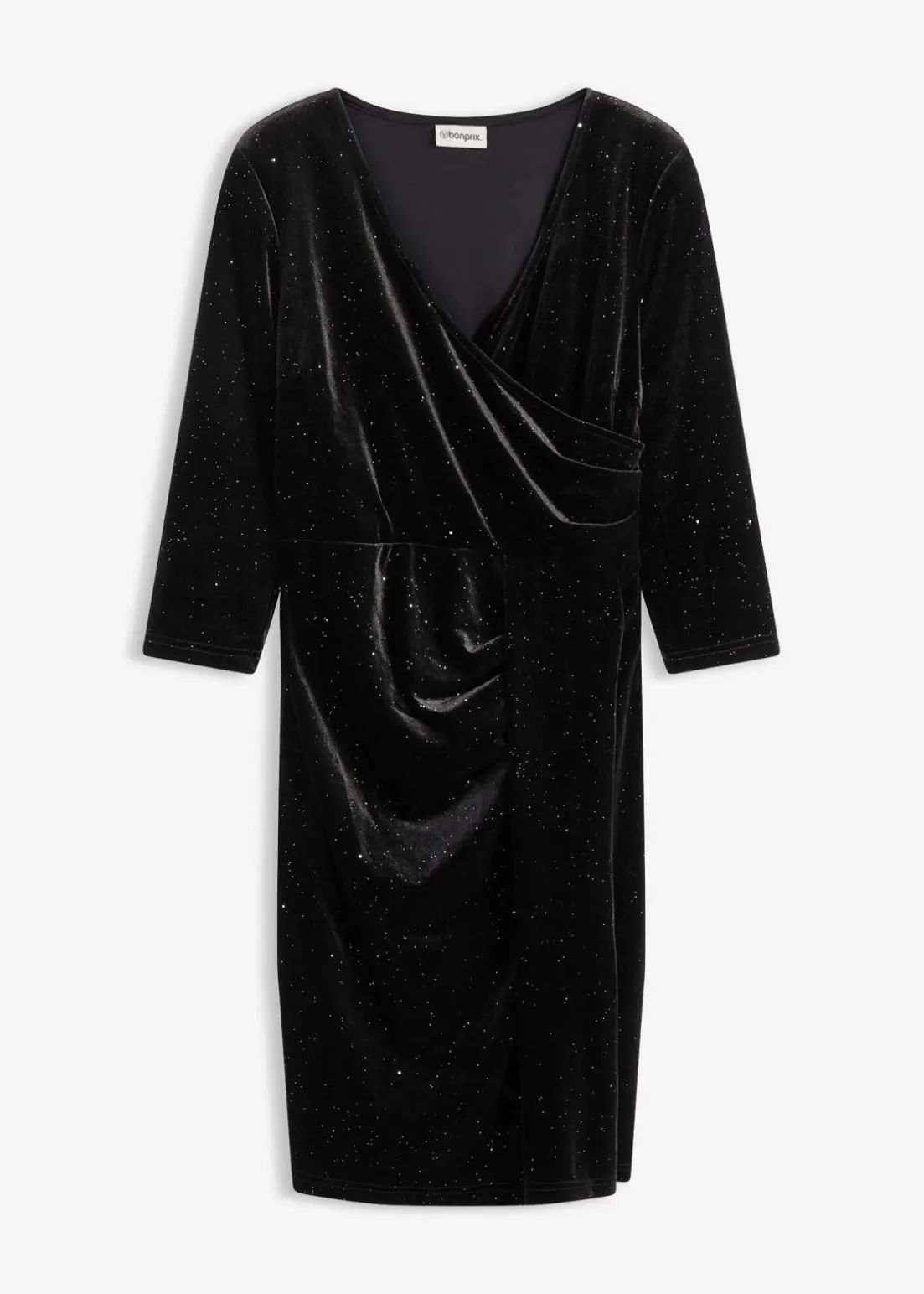 Modern und feminin: Samtkleid in Wickeloptik mit besetzten Strasssteinen und Raffungsdetails machen dieses Kleid perfekt für besondere Anlässe.