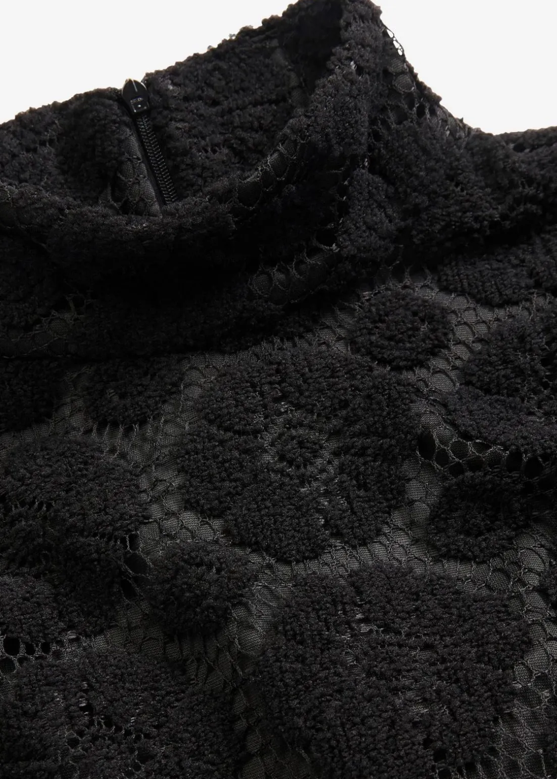 Trendiges, hochgeschlossenes MInikleid aus Spitze und langen Ärmeln
