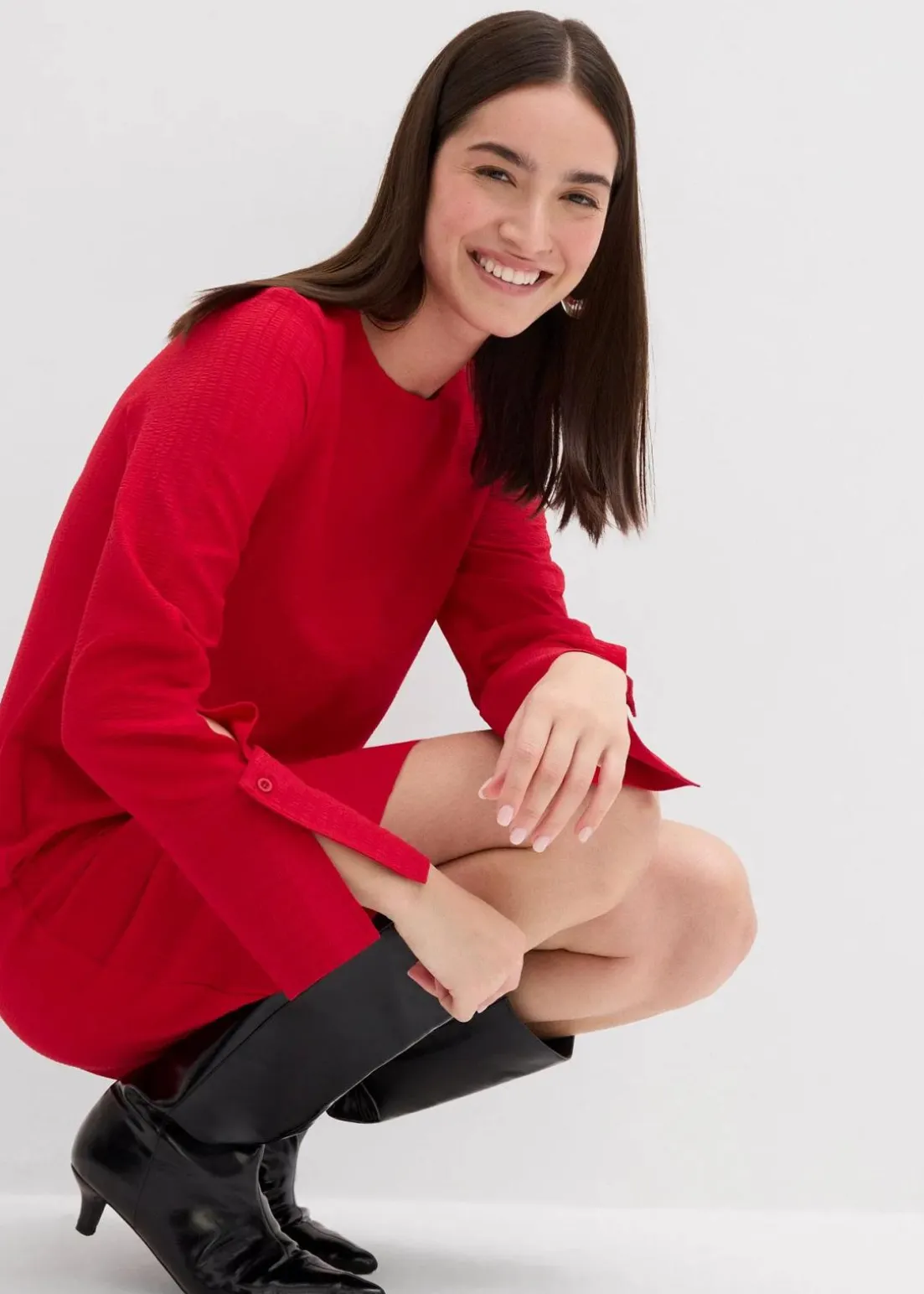 Minikleid aus strukturierter Ware mit breiten geschlitzten Manschetten sowie Schlüssellochöffnung mit Knopf am Rücken