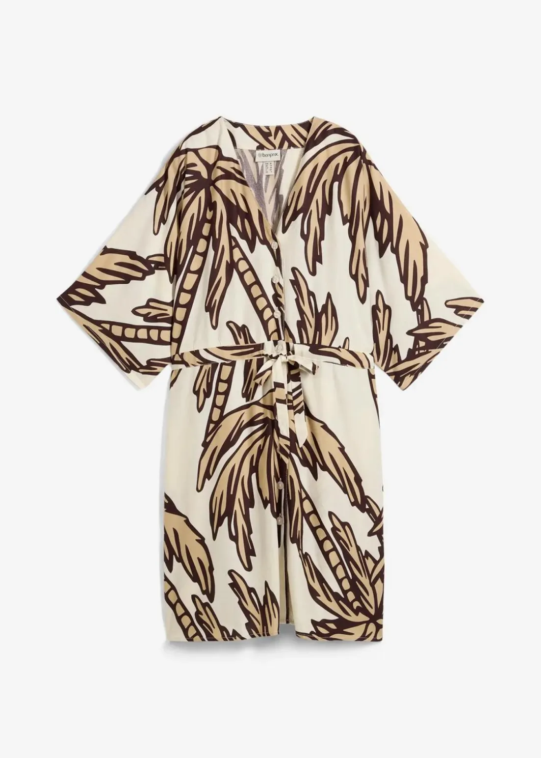 bedrucktes Kleid aus fließender Viskose mit Knopfleiste vorne und Tunnelzug in der Taille