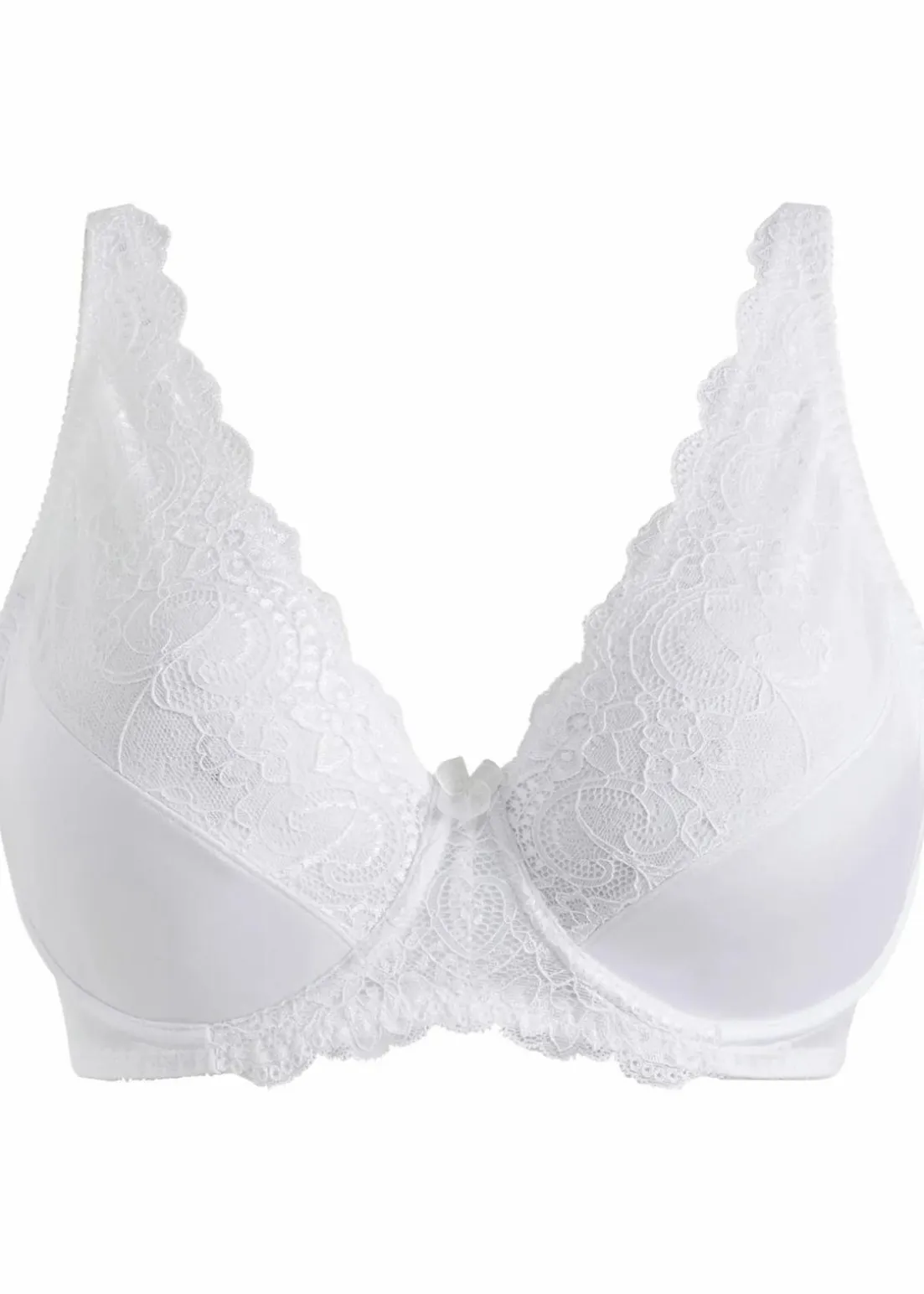 Das elegante Design mit halbtransparenten Spitzeneinsätzen am oberen Cup, die in die Träger auslaufen, verleihen dem BH einen verführerischen Look. Der spezielle Schnitt lässt eine große Oberweite optisch kleiner wirken, wobei die formgebenden Bügel ein schönes Dekolleté zaubern. Die in der Länge verstellbaren Träger, ebenso wie der Haken- und Ösenverschluss, sind in den größere Cupgrößen etwas breiter gearbeitet.