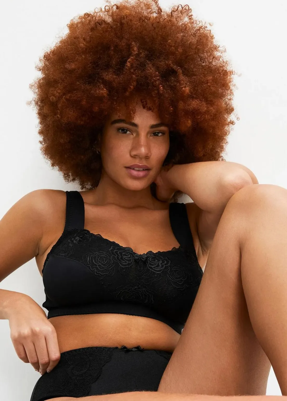 Ohne Bügel, gepolsterte Träger, spezielle Schnittform lässt die Büste optisch kleiner wirken.
