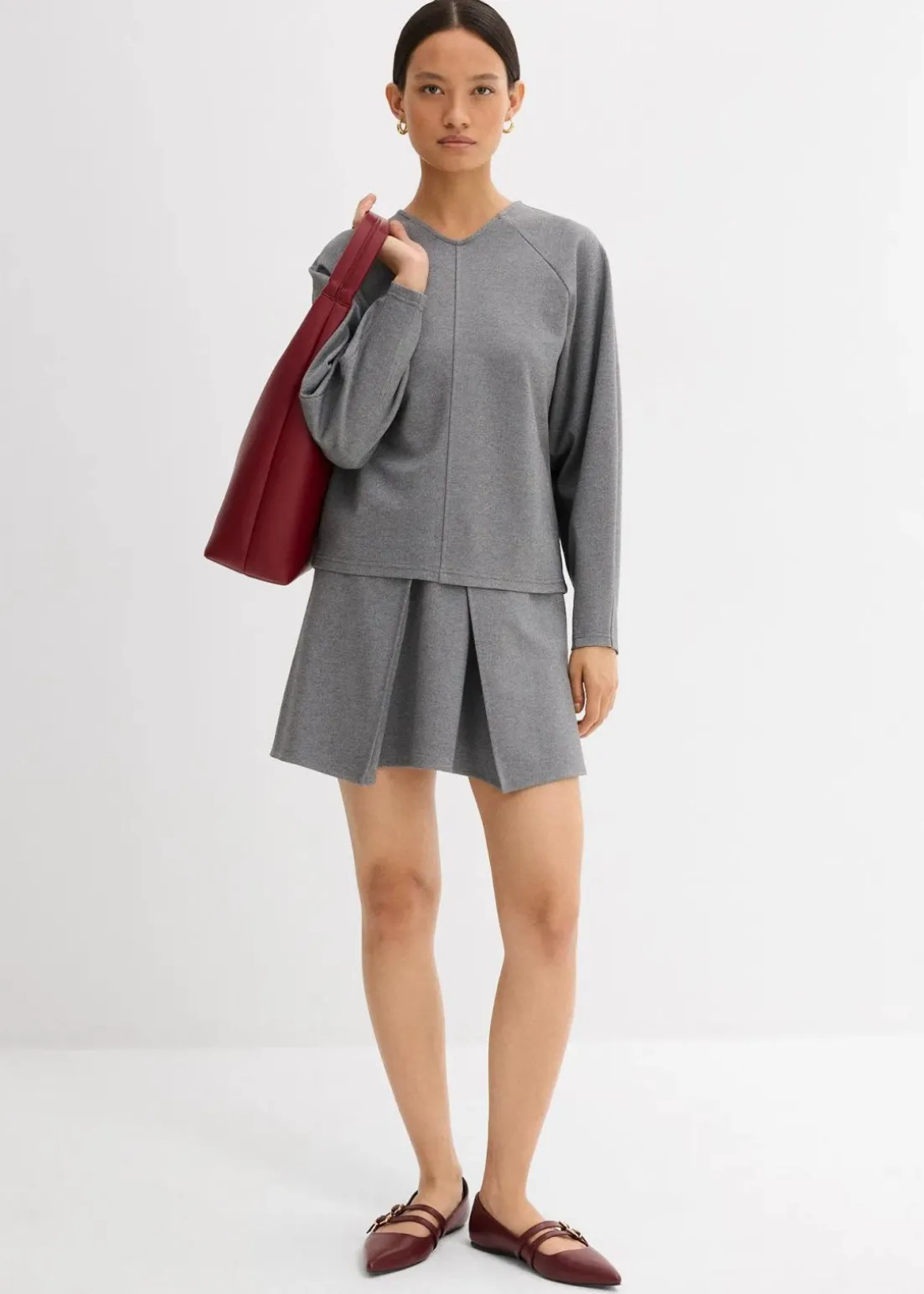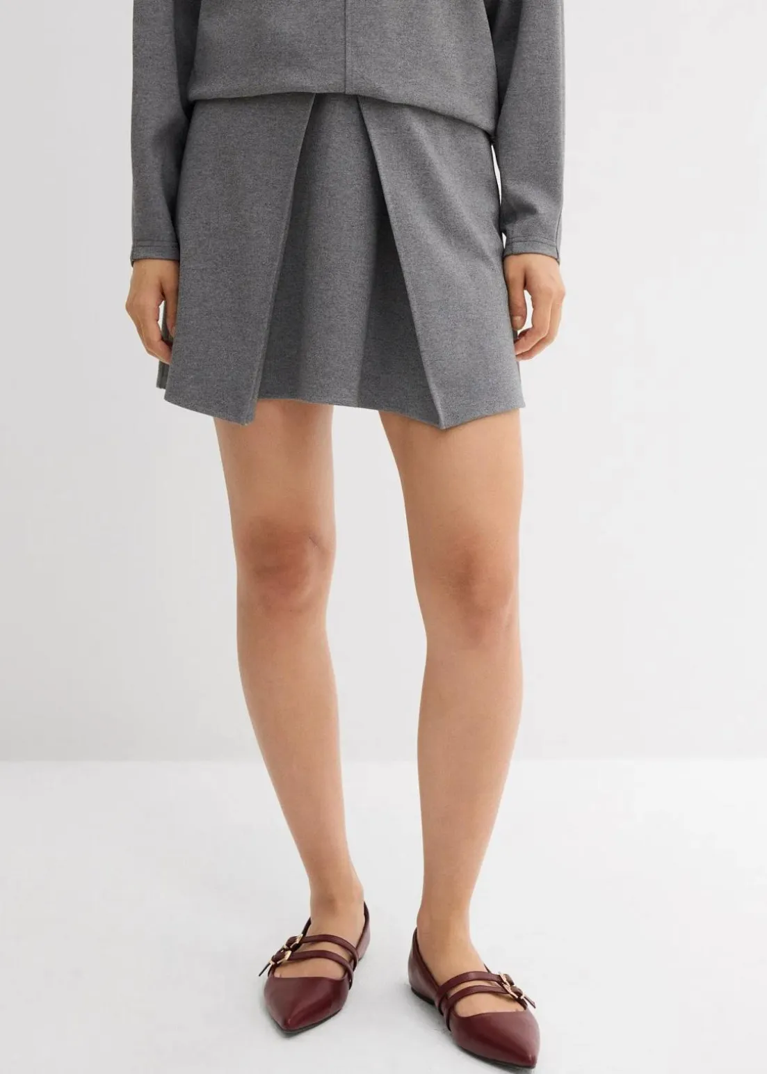 Ausgestellter Minirock mit Kellerfalte an der Vorderseite und Reißverschlussöffnung hinten