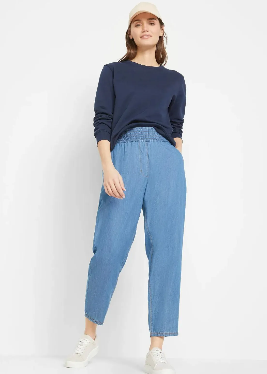 - Saumweite:enger zulaufendes Bein (Tapered Leg)